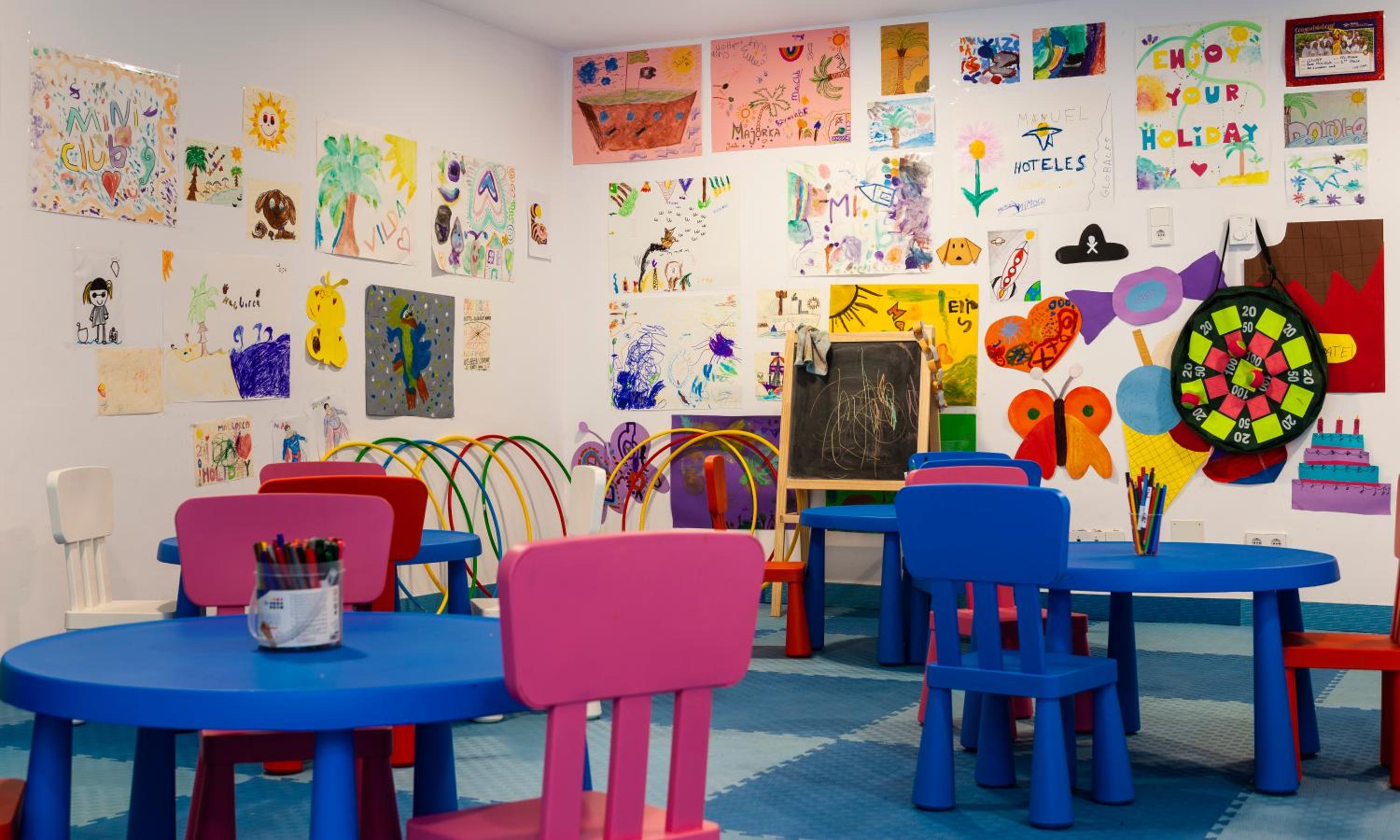 We did see a little room which we think was a indoor kids club but you couldn't see through the glass. There were a few pick up machines hidden away in a corner by the pool and that seemed to be it. Im guessing maybe in summer it would have more to do. I wouldn't take my kids there.
