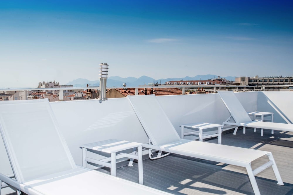 Hotel situé en plein centre de Cannes, dans les rues commerçantes à 5 min à pied de la Croisette. Les chambres sont petites mais c'est suffisant. Le petit déjeuner est simple mais efficace. Le toît terrasse est vraiment top, magnifique vue sur Cannes.