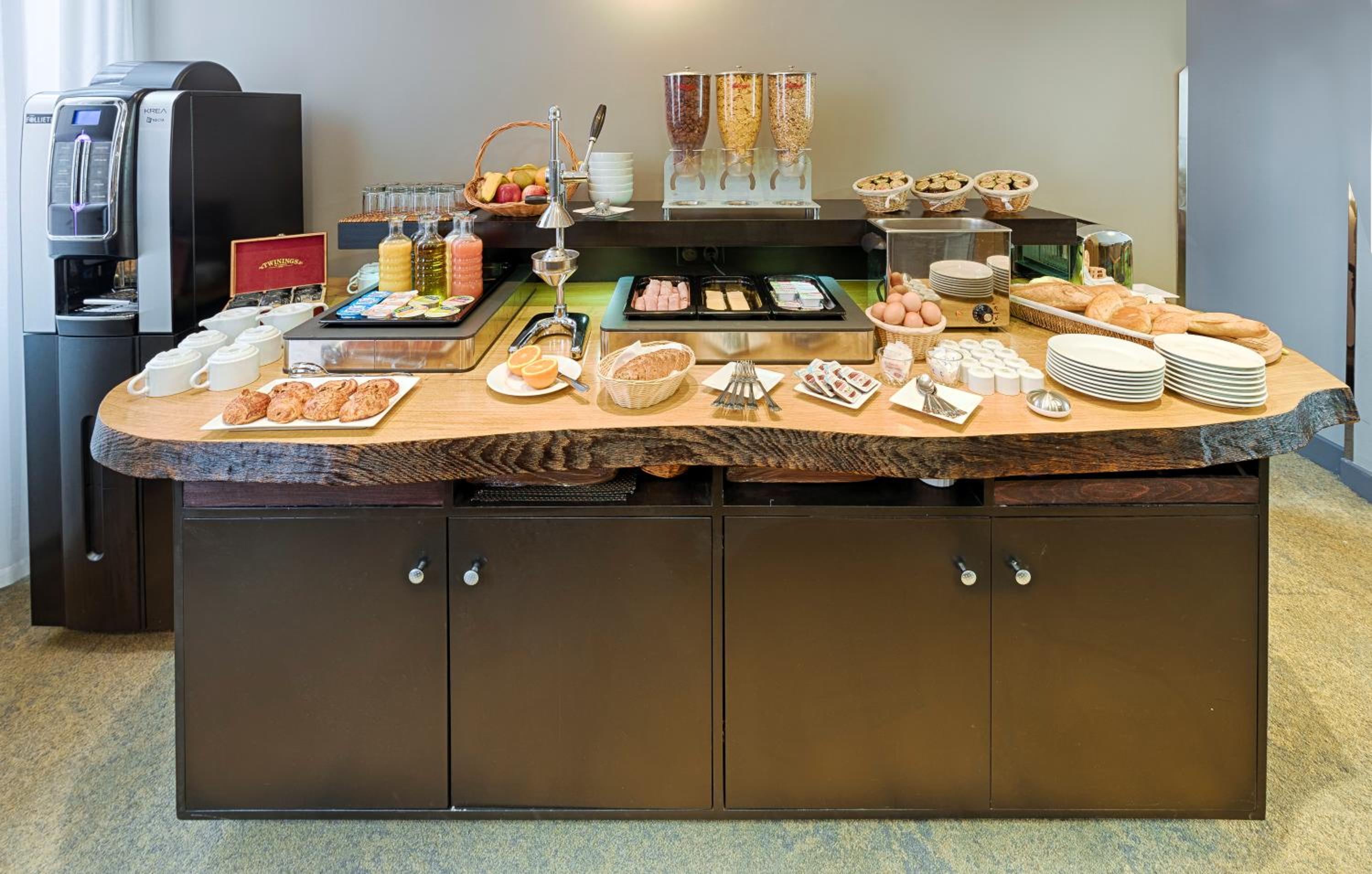 Petit déjeuner idéal, ( orange à presser, salé et sucré, bon café et bons thés)