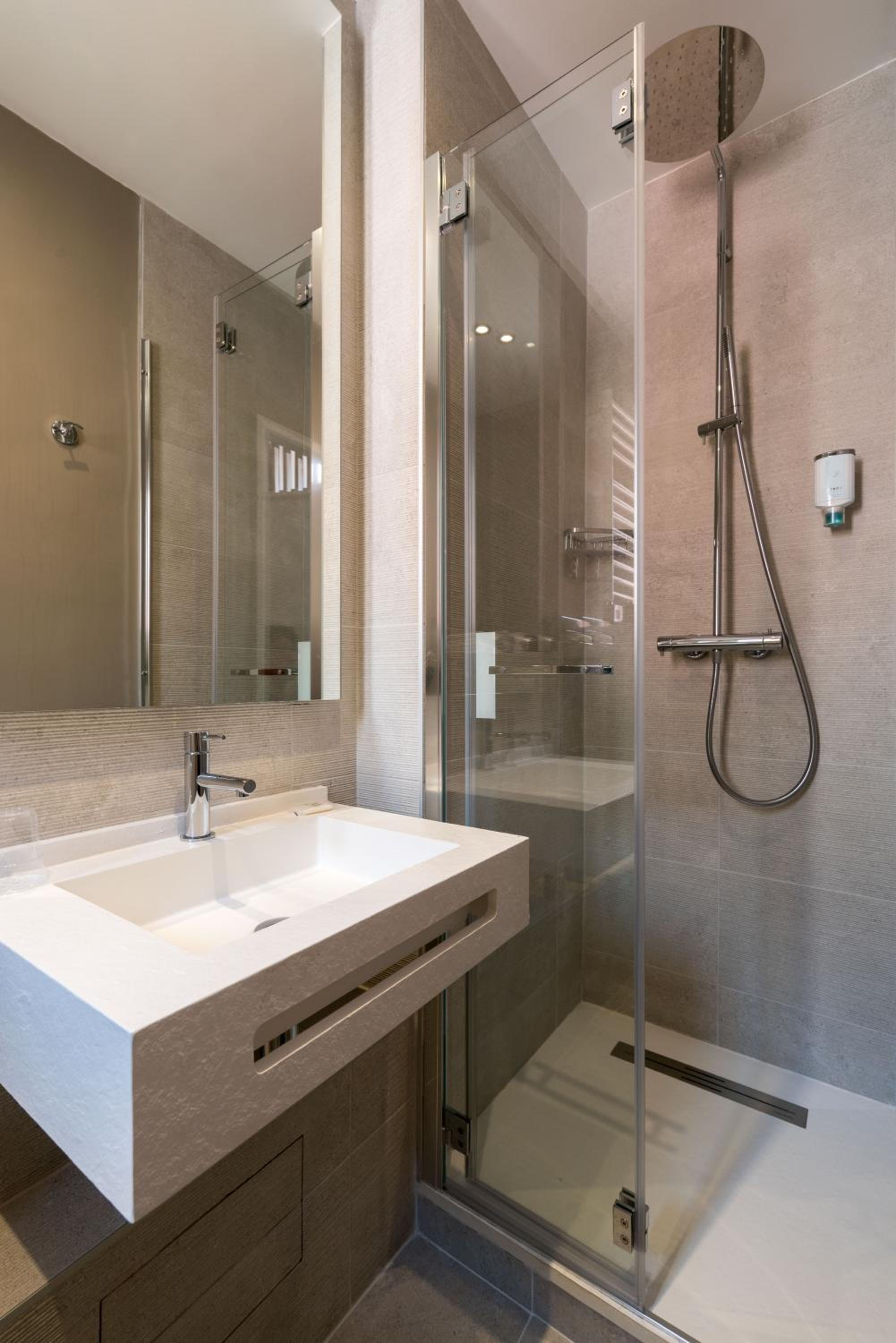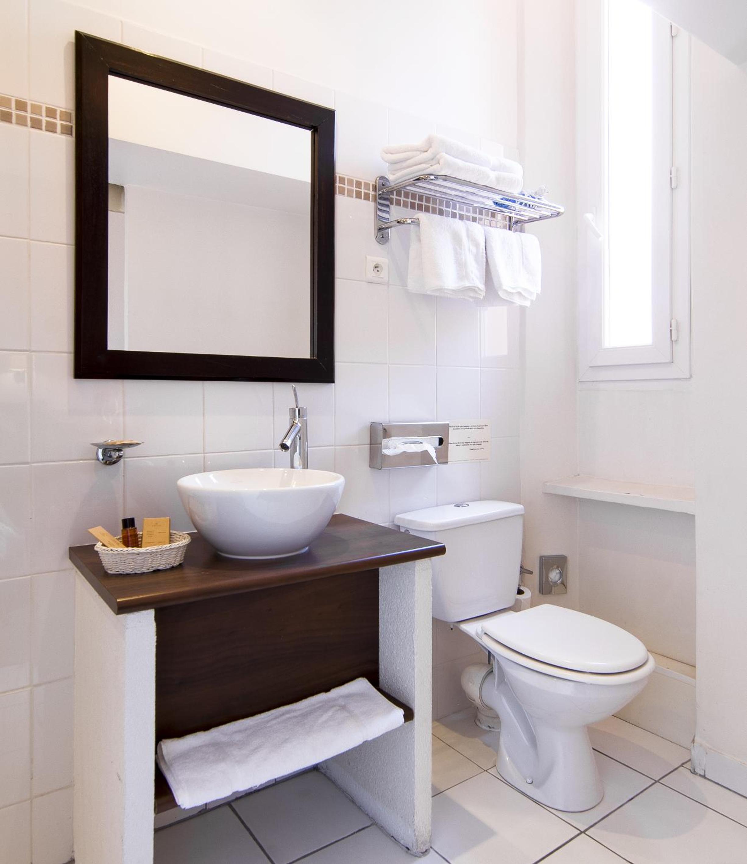 Salle de bain : très correcte mais joint de la douche défectueux (salle de bain inondée en une douche)