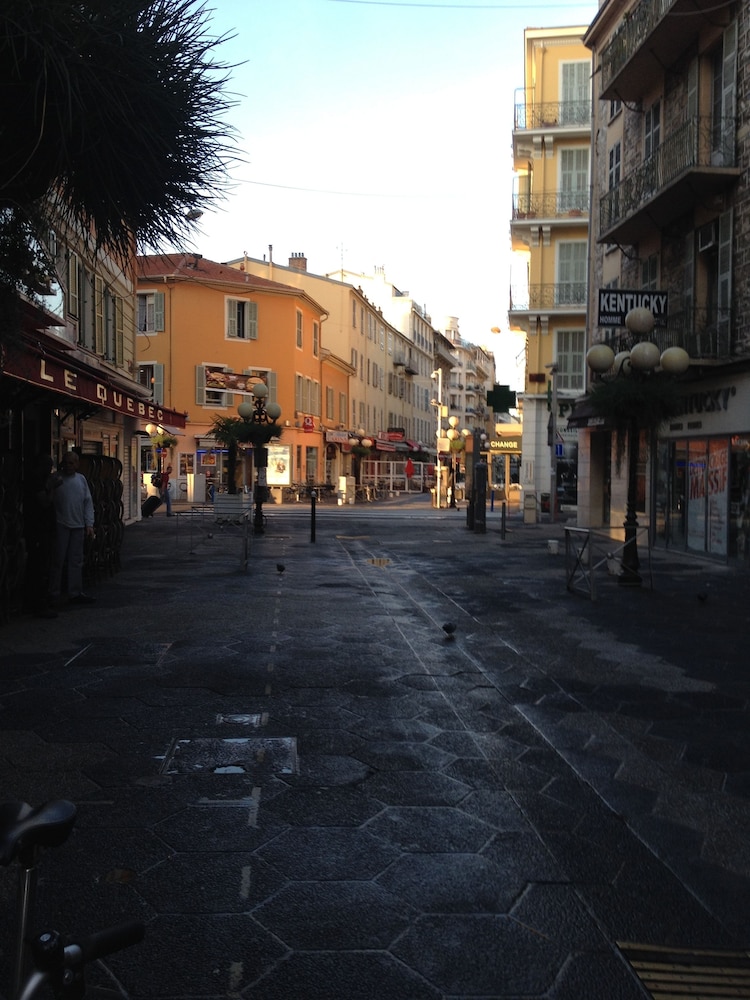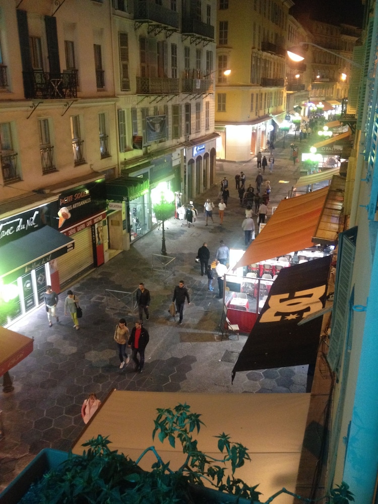 Litet hotel med bara trappor! Mitt på restauranggatan nära Place Massena! Kort avstånd till beach och gamla stan m mysiga restauranger. Affärsgator precis intill.