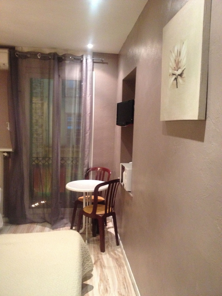 L'accoglienza è stata discreta, ma il personale non conosceva altra lingua che il francese, quindi i dialoghi erano estremamente difficoltosi. I locali sono fatiscienti ed abbisognevoli di radicale ristrutturazione. Le finestre cadenti, il letto rotto, lenzuola e copriletto visibilmente macchiati e maleodoranti; la pulizia dei locali scarsa. Il bagno assolutamente inidoneo; il lavandino cm 20x15 non consentiva neanche di mettere entrambe le mani sotto il rubinetto per potersi lavare. Credetemi: una vera topaia! La prima colazione alquanto deludente. Peccato, una città bellissima, pulitissima e silenziosa che non merita di esssre ricordata per un albergo che non fa onore al luogo e che vanta due stelle assolutamente non appropriate. Ritornerò a Nizza con mia moglie, ma certo non in quell'albergo che le autorità dovrebbero chiudere assolutamente.