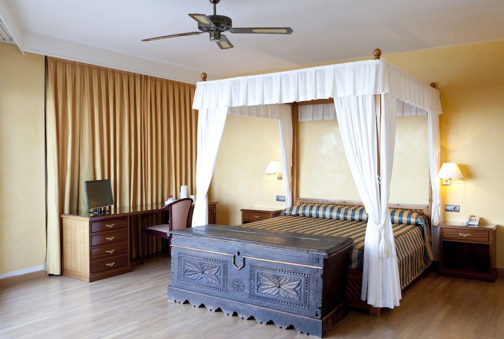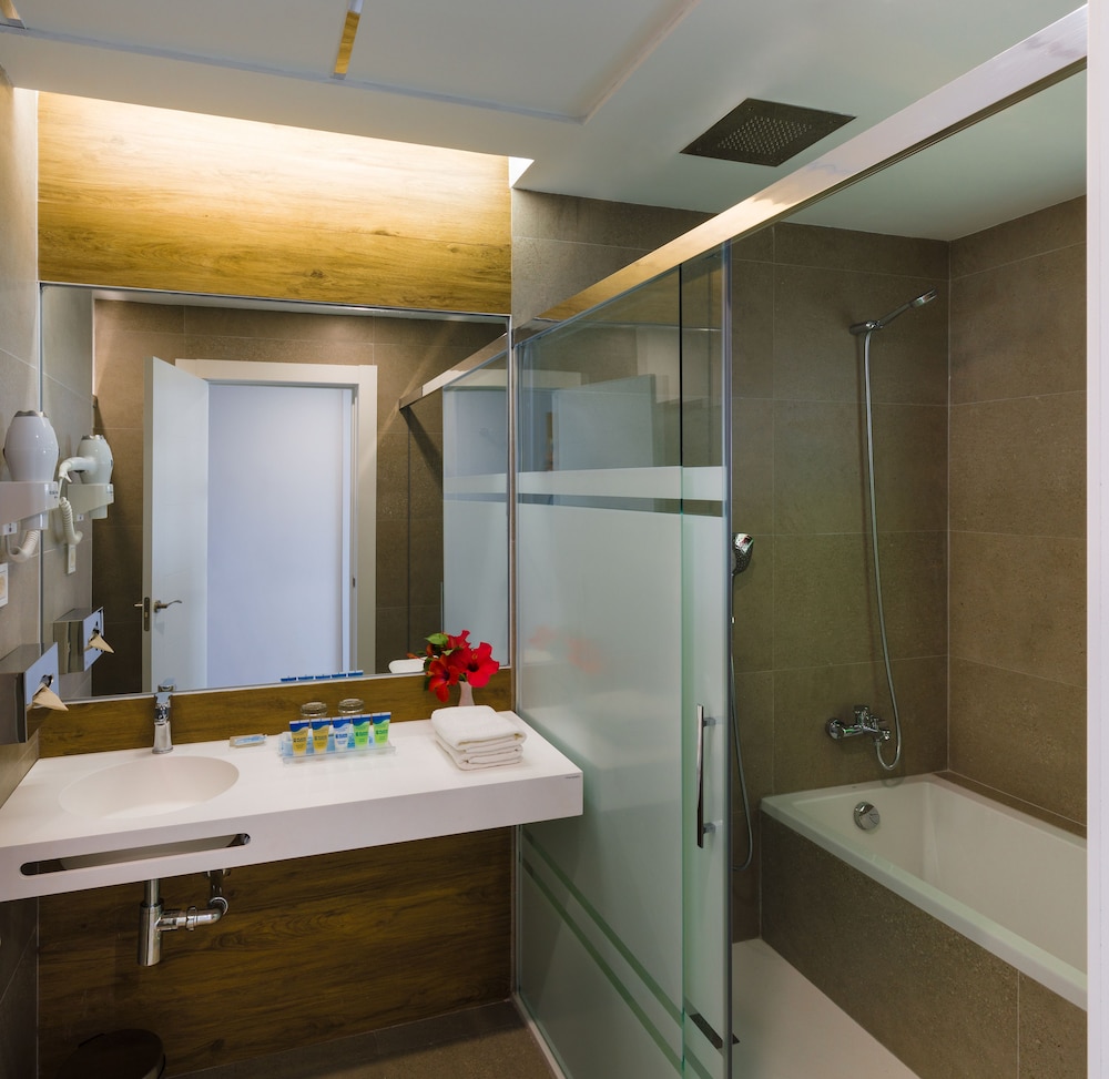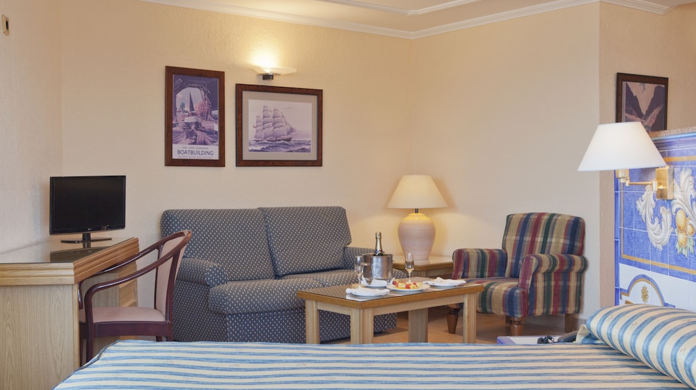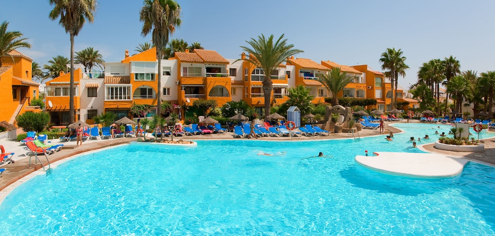 Decepcionante, el hotel está viejo y estropeado. Lo único que merece la pena son los toboganes y el personal también muy amable. La comida del bufet también está rica. La habitación está rota, deteriorada y vieja. Los muebles rotos y anticuados. El sofá cama destrozado. La nevera y la caja fuerte de los años 50. Las piscinas sucias y masificadas. La taza del water picada. Óxido en bañera. Las cortinas sucísimas. Las sillas de la terraza desgastadas. La alfombra del pasillo intocable. El comedor masificado y anticuado. El gimnasio es como una sauna con las máquinas rotas. Mejor cerrarlo si no quieren que haya un accidente. El SPA aunque es de pago, está muy bien. El hotel NO merece las 4 estrellas, no se corresponde calidad-precio. El ambiente hortera y sin clase.