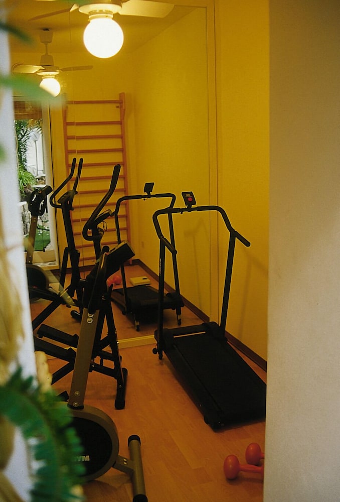 One of the best locations on the island for first time visitors. You get off the ferry and in a three minute walk you are at the hotel. The hotel is italian-style with the owner checking you in and someone else at the front desk helping out too. The owner takes pride in his hotel you can tell so make sure to not complain or give him any problems and then he is friendly. The breakfast buffet has fresh fruit (watermelon when we stayed), pastries, toast, and juice and coffee machines to pick your own drinks. The location was quiet since it’s not on the Main Street, but close enough to the main area where you can walk. There is free parking behind (up the sidewalk) the hotel if you rent a moped (40/day) or a car (60-70/day). The hotel has an uppper roof Terrance great for photos of the island 360 and a Terrence in the second floor and the bottom floor has a court yard with trees and feels like you are walking in a forest. The breakfast room is large the waitors cleaning the tables dress up to clean your dishes like people working at a fancy restaurant with black pants and white dress shirts. Nice touch . We did not try the massages there but there were options to book them. The beds were italian-style as expected in a less expensive hotel in Italy ( they could use a memory foam topper if you are use to American beds); they were hard mattresses but as expected there. The quadruple rooms are small (two single beds and one queen) but have nice balconies and a mini fridge. Recommend