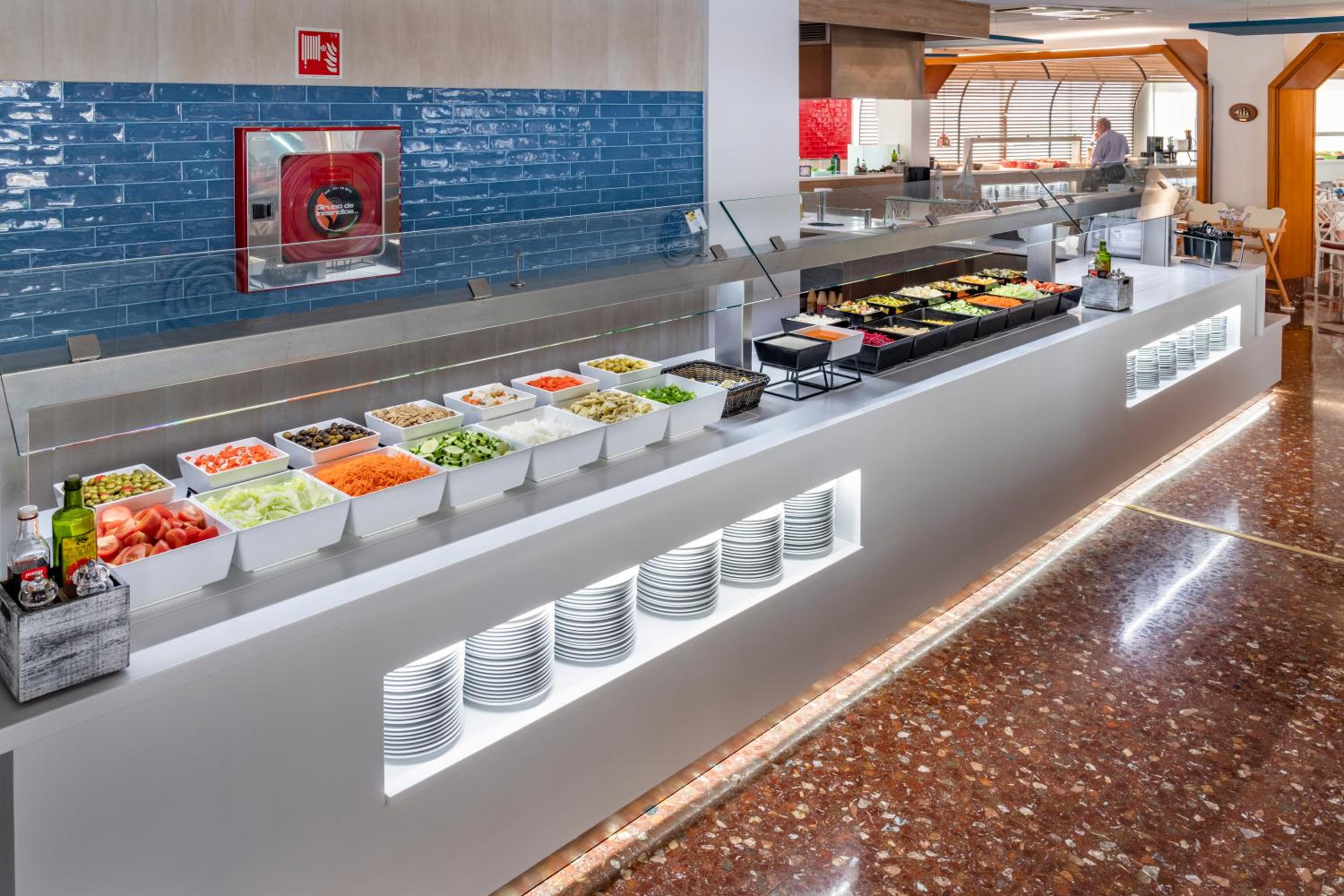 No me gustó que caminar descalzo por las baldosas de la terraza de la piscina es un suplicio que te destroza los pies. La habitación no tiene nada que ver con las fotos. Muy pequeña. El colchón era de muelles y ha vivido tiempos mejores. Dolor de espalda al levantarnos. Hormigas en la habitacion. Poco detalle en el baño para ser un 4 estrellas. Dos vasos de cartón y nada más. El señor que atiende el comedor al entrar, es un poco altivo y desagradable. No vivimos aquí, hay formas más agradables de explicar las normas.