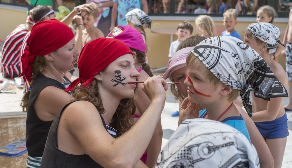 The water attractions are in good condition, but they need renovations. We we were not allowed to move sunbeds. We needed one free sunbed and wanted to move free one next to ours. The lifeguard wouldn't allow it. Using inflatables in the pool was also forbiden. The water is quite cold at the end of september. There were FOUR KIDS in the large pool, and my children didn't want to swim, so we wanted to use inflatable. The lifeguard required the crocodile to be removed from the pool... I would have understood if the pool had been crowded... There was (almost) no entertainment. No music, no zumba, no aqua aerobics, etc.