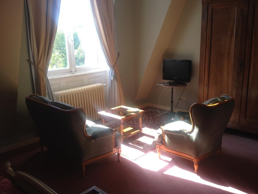 Nous aimons les vieilles pierres et les meubles anciens et nous avons été comblés .Nous avons été agréablement surpris de bénéficier de la suite Louis XVI chambre 36 & 37 avec son ciel de lit ancien ,son salon , son volume et la clareté apportées par les deux grandes fenetres . La SdB est un peu rustique mais ne manque de rien . Le service et la qualité des menus Diner et Dejeuner étaient raffinés ,ce qui nous a fait oublier ,la raideur de l' escallier , pour monter dans notre chambre .Une indication , du chateau ,en amont de la rue des ruisseaux serait plus commode ; Dès notre arrivé ,nous avons été très bien acceuillis .Ce fut un WE plein de charme . En deux mots ; une vie de Chateau .