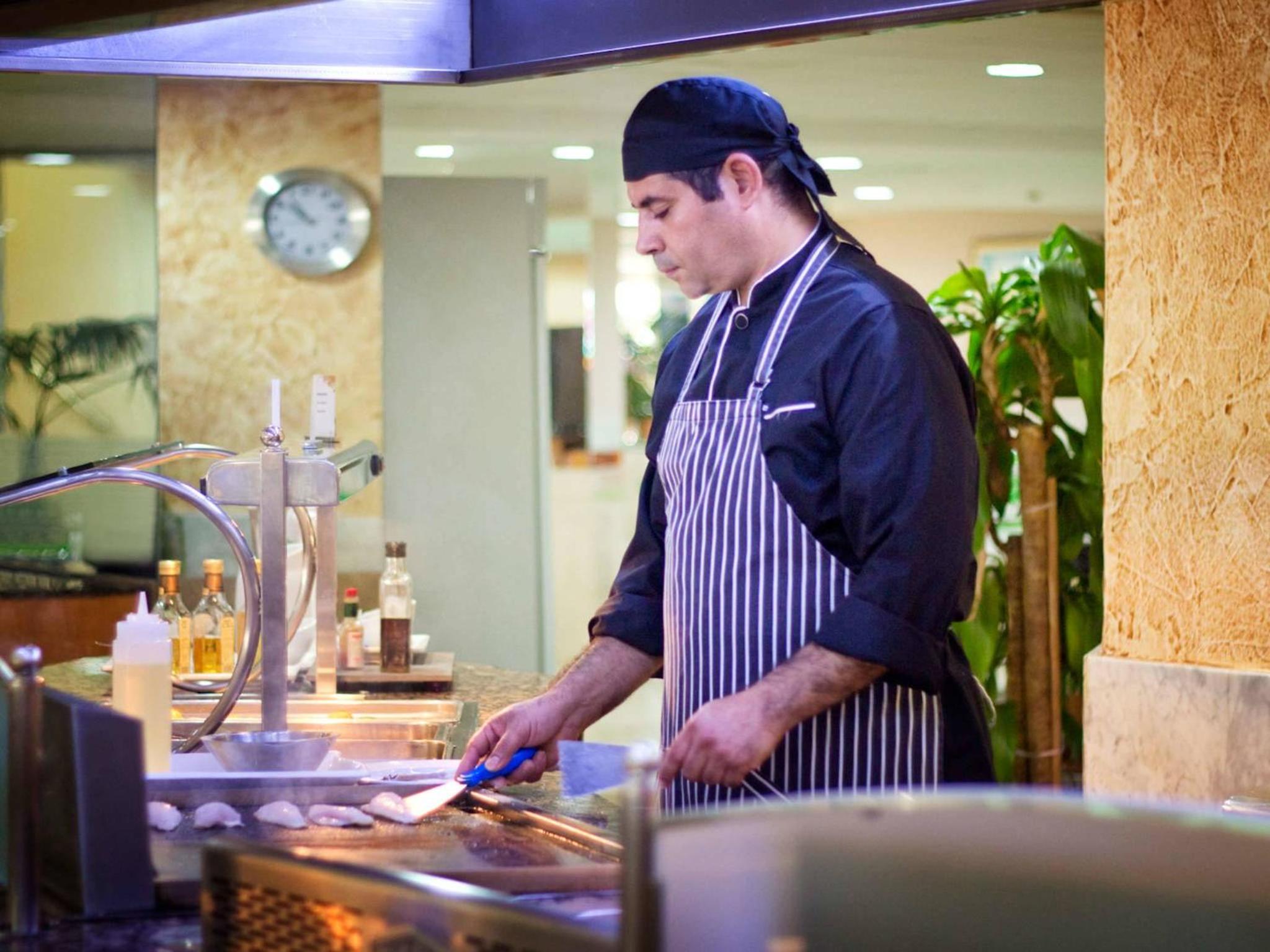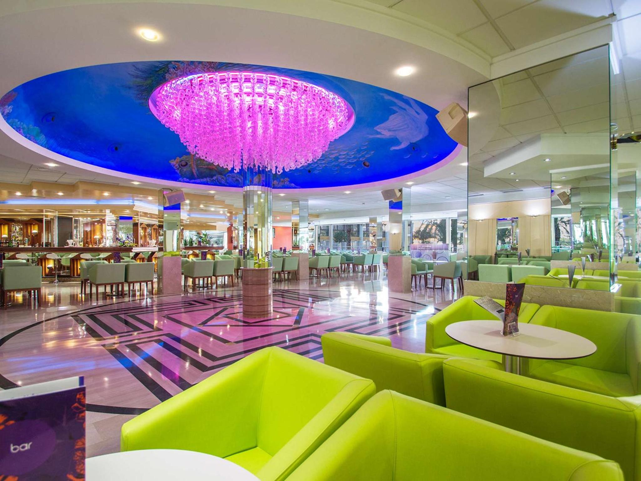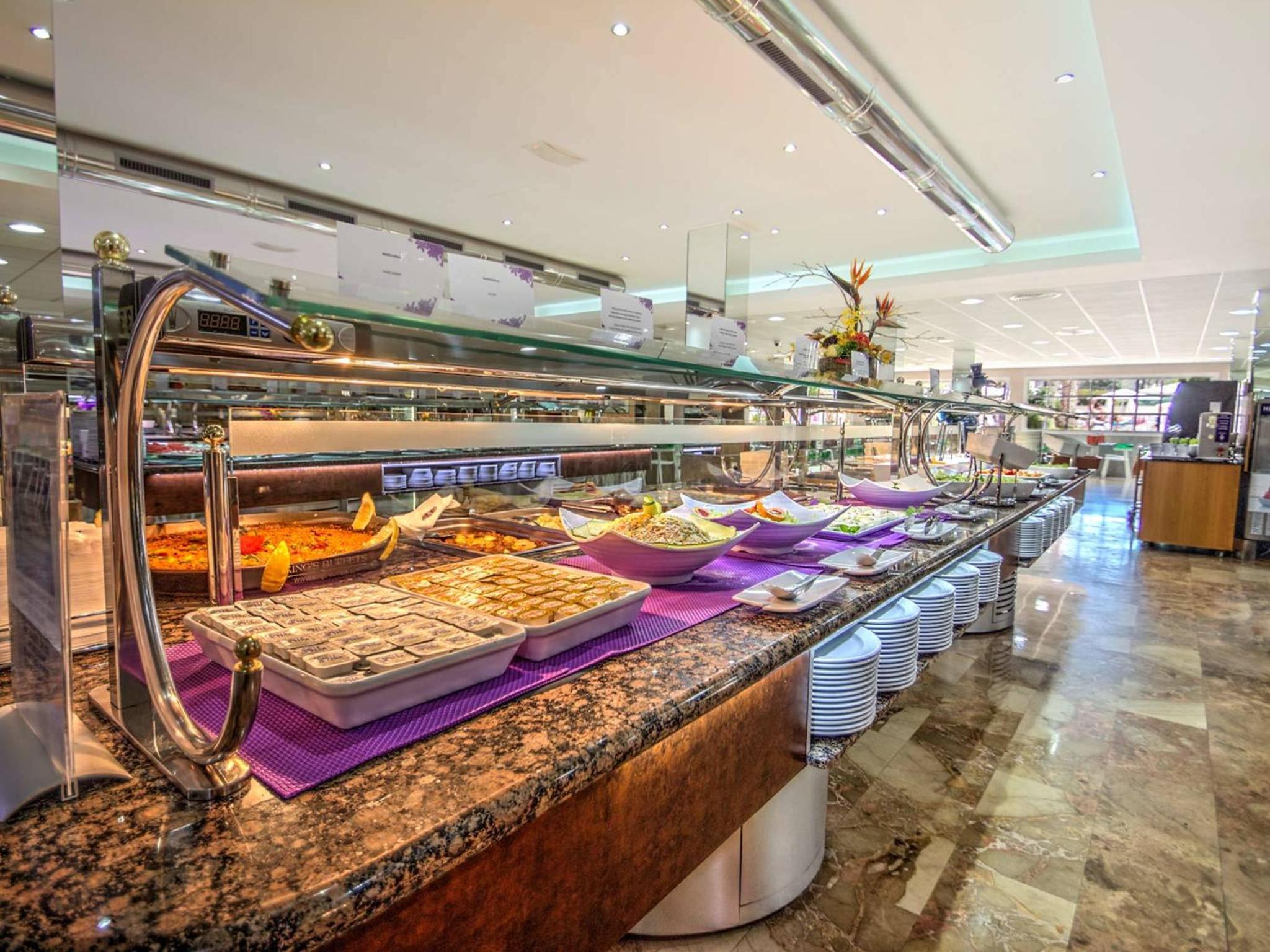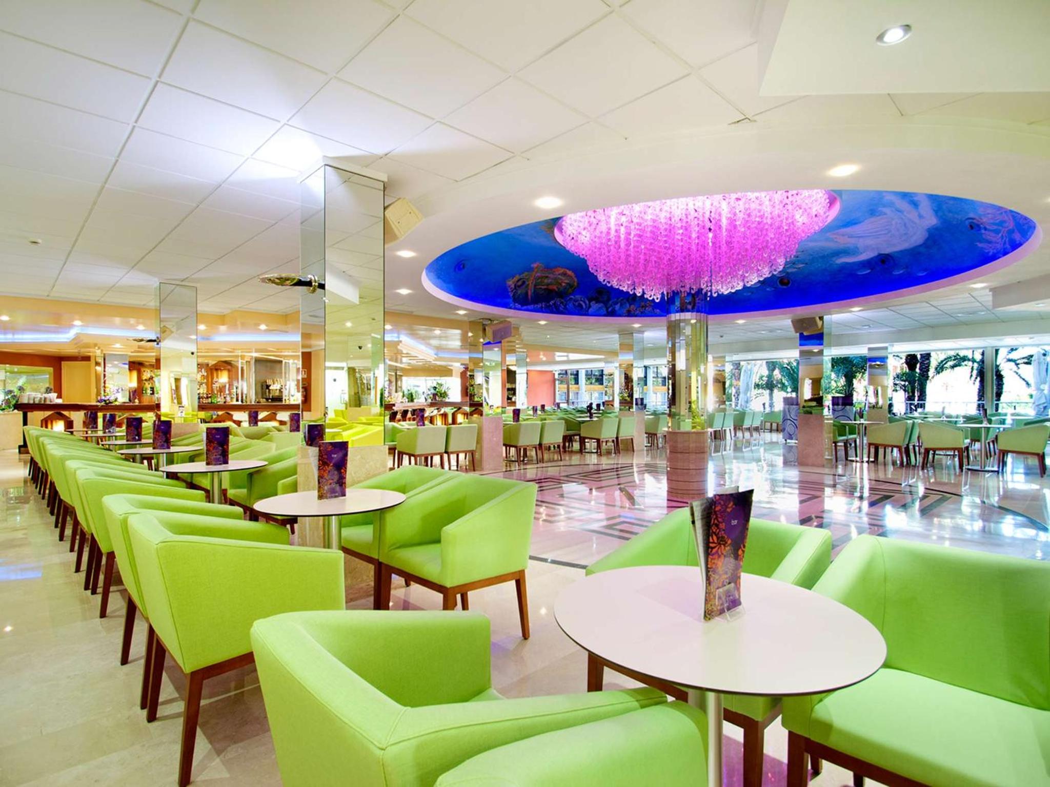 Indulge in delectable international cuisine at the buffet restaurant with show cooking, including special celiac menus. Sip on refreshing drinks and savor light meals at the poolside Gaudí Bar during the summer months.