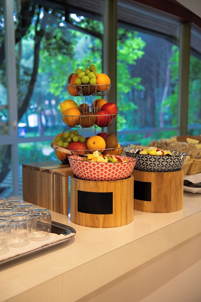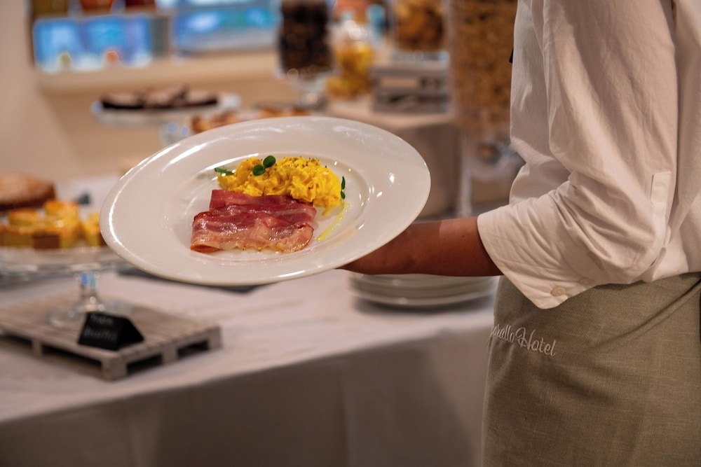 Sala colazioni e buffet molto piacevoli, area esterna molto rilassante e ben tenuta, compresa la parte della piscina, molto gradevole.