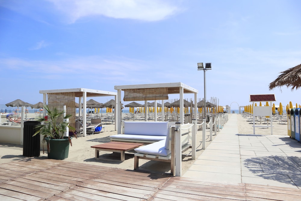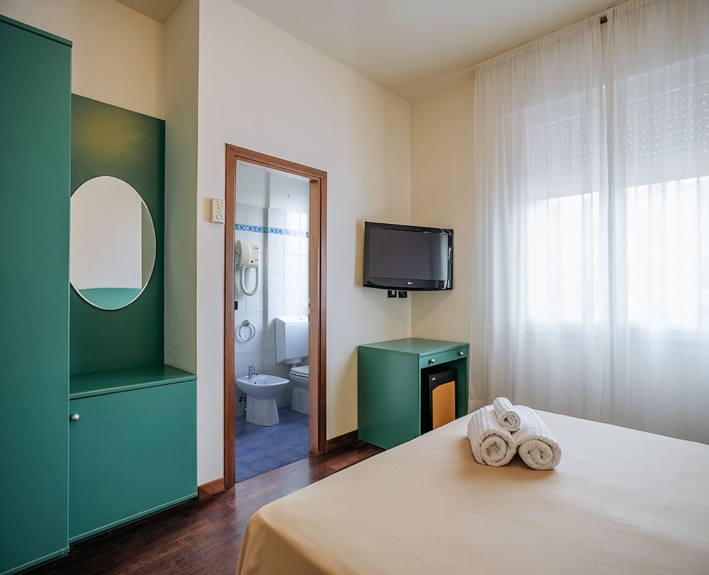 Hotel was more than we expected. The staff was super friendly, the hotel was right in the middle of the beach area and the included breakfast was awesome! There are a ton of restaurants and grocery stores in the neighborhood. The beach is right across the street! And as my kids can attest to, the best waves in Ravenna are right in front of the hotel. The hotel is popular so all the taxi services know right where you are when you call. We easily transferred between the train station and the cruise port.