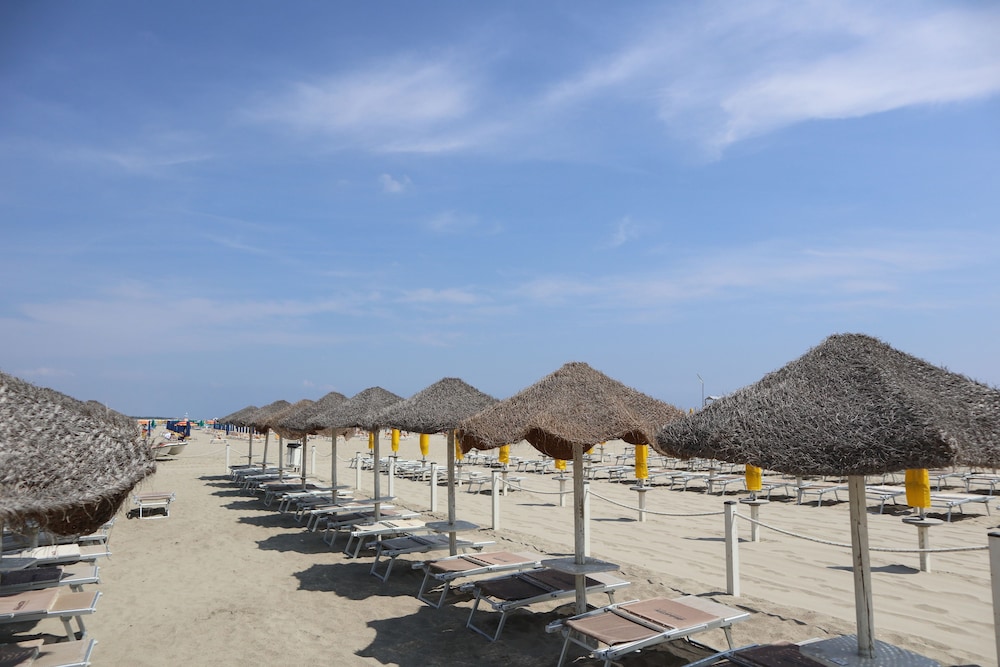parasol og strandsenge er inkluderet i hotel prisen, samt brug af privat parkerings område. smukt badeferie paradis for lokal italienske familier osv