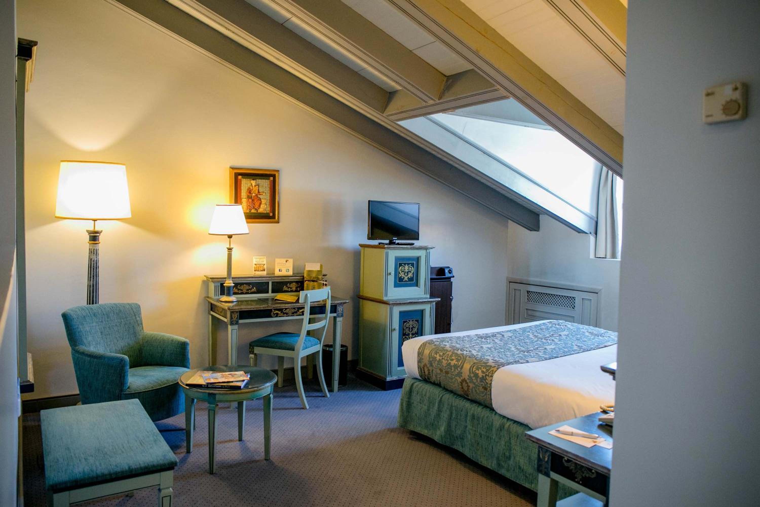 het gebouw waar dit hotel is gevestigd is van 1600, waanzinnig gegeven. De kamer was groot, met grote badkamer en twee openslaande deuren. Badkamer was ook groot, grote douche en prima schoon. Personeel was fantastisch, ik kreeg de kluis niet meer open en zij kwamen direct mee het probleem op te lossen. Omdat we de stad nog wat wilde verkennen mochten we iets langer in de parkeergarage staan. Het hotel ligt midden in het historisch centrum, recht tegenover de kathedraal.
