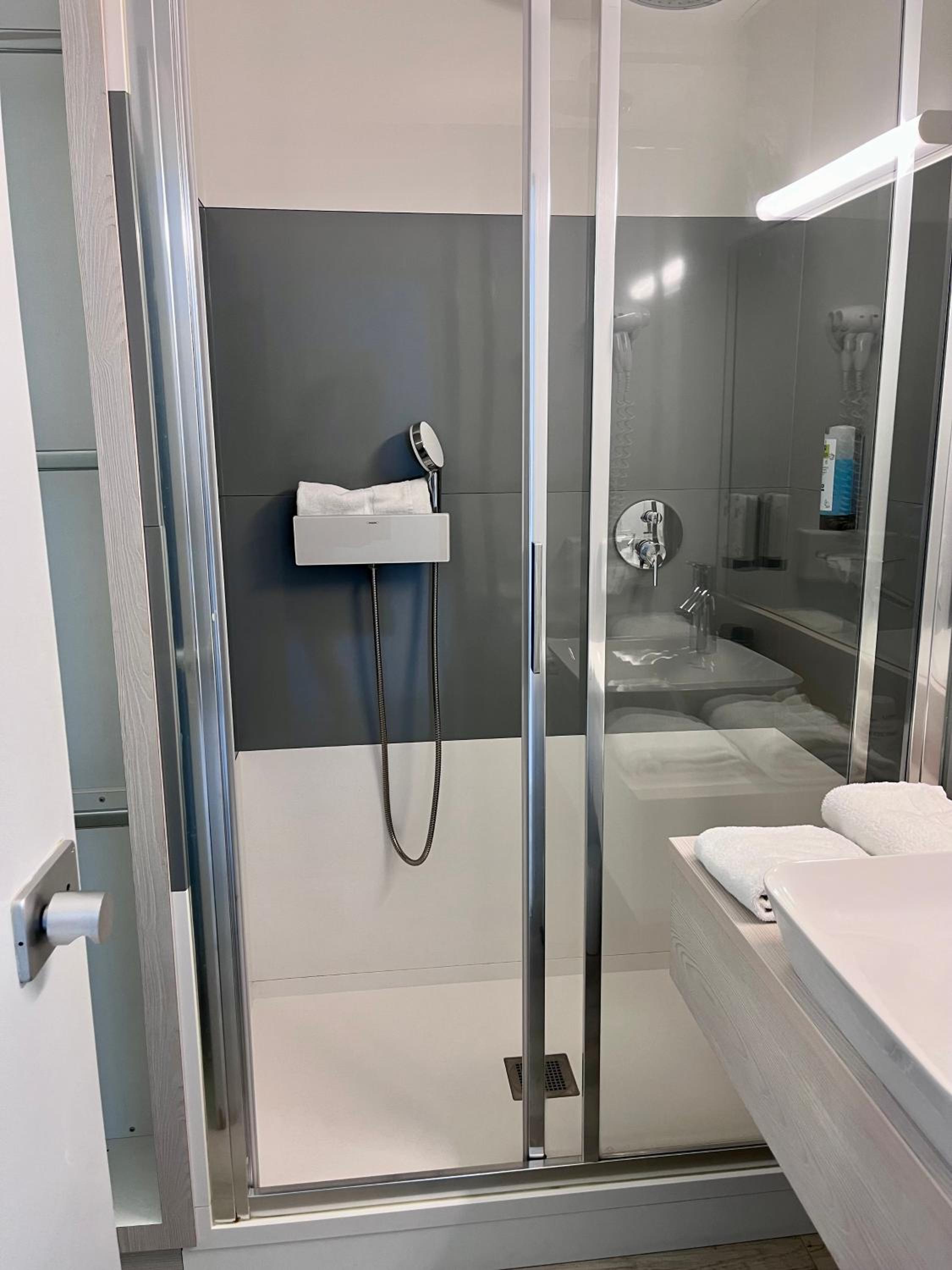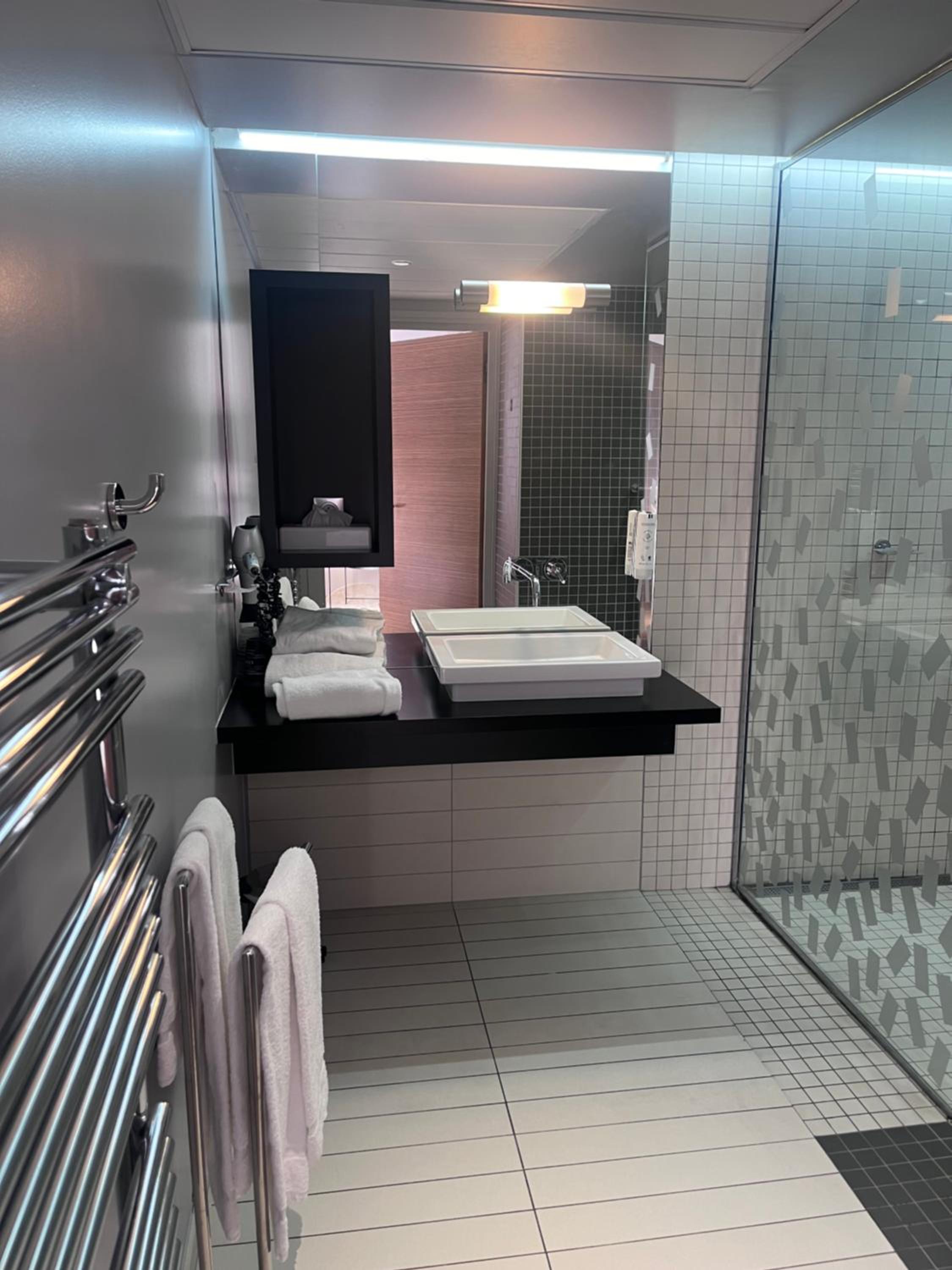 Das enge Schlaf und Badezimmer, hinzu ein kleines Fenster und ohne Aussicht