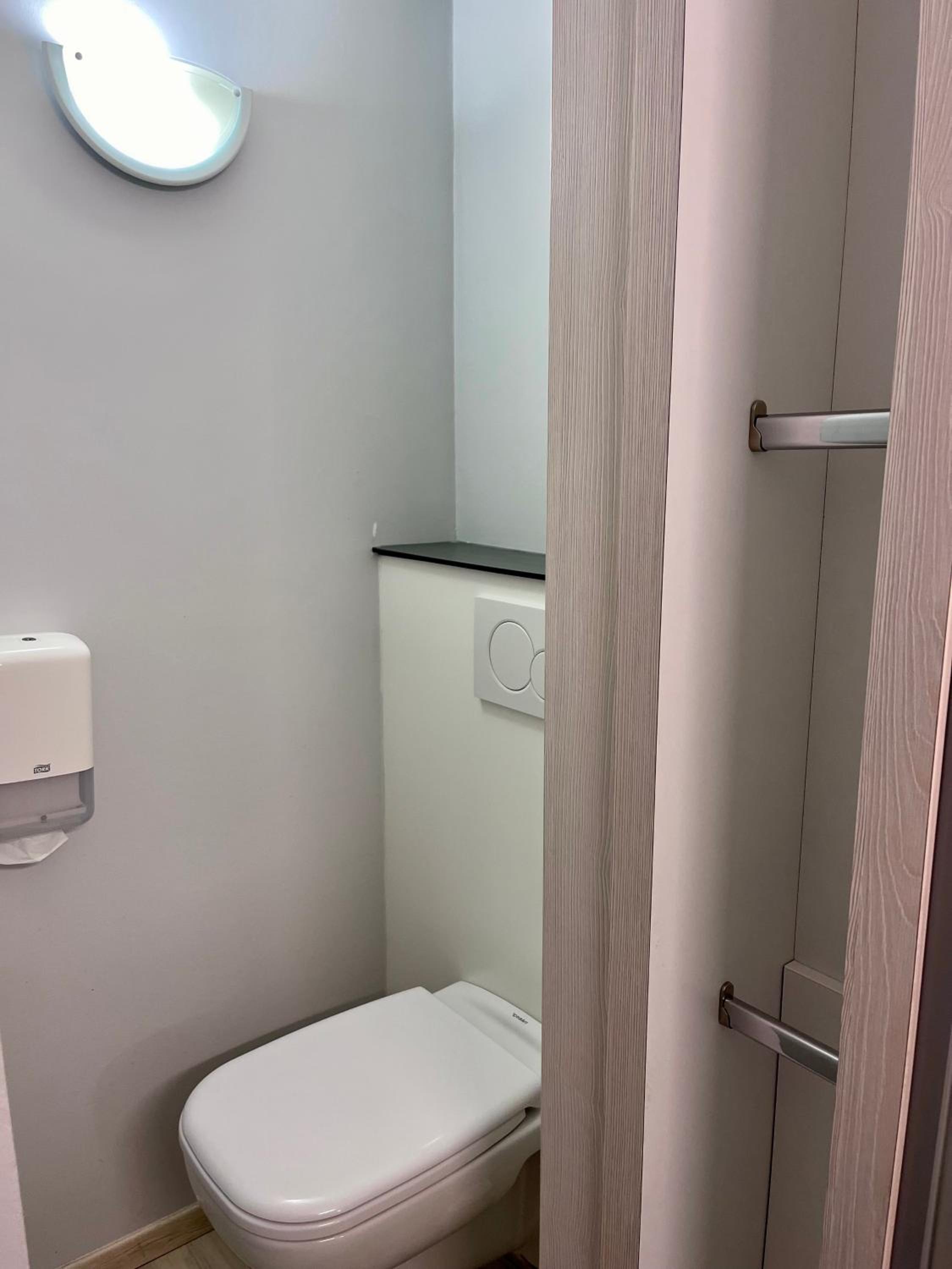 The space around the toilet in the bathroom was very small,s, not for big people.