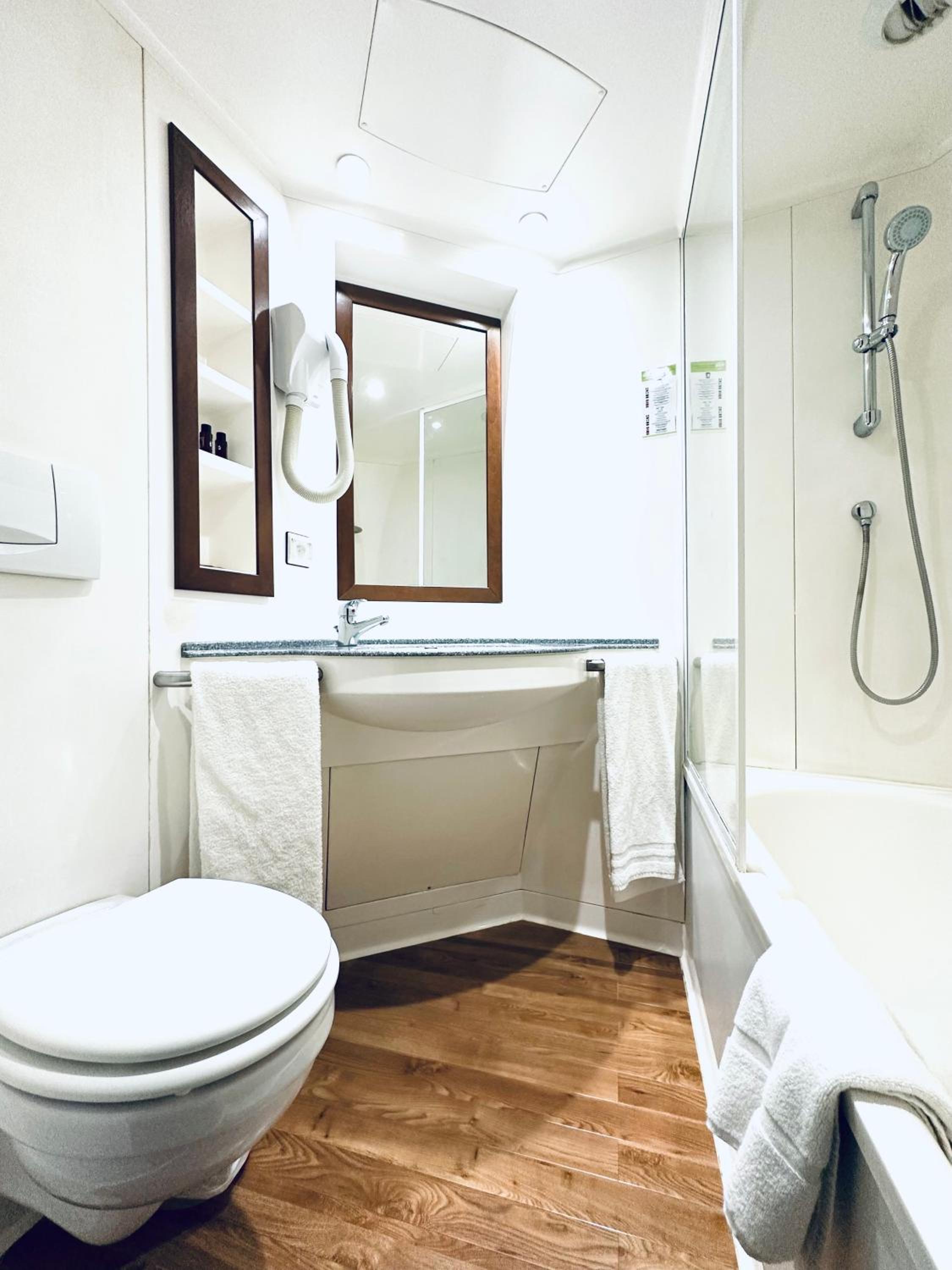 Aufgrund der Platzverhältnisse wurde ein enorm kleines aber funktionelles Bad eingebaut, was grundsätzlich in Ordnung ist. Nur leider spült die Toilette so schlecht, dass man bis zu drei mal spülen muss, bis alles weg ist.