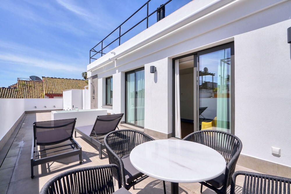 A piscina no terraço é um diferencial: perfeita para relaxar depois de um dia de passeios sob o sol andaluz.