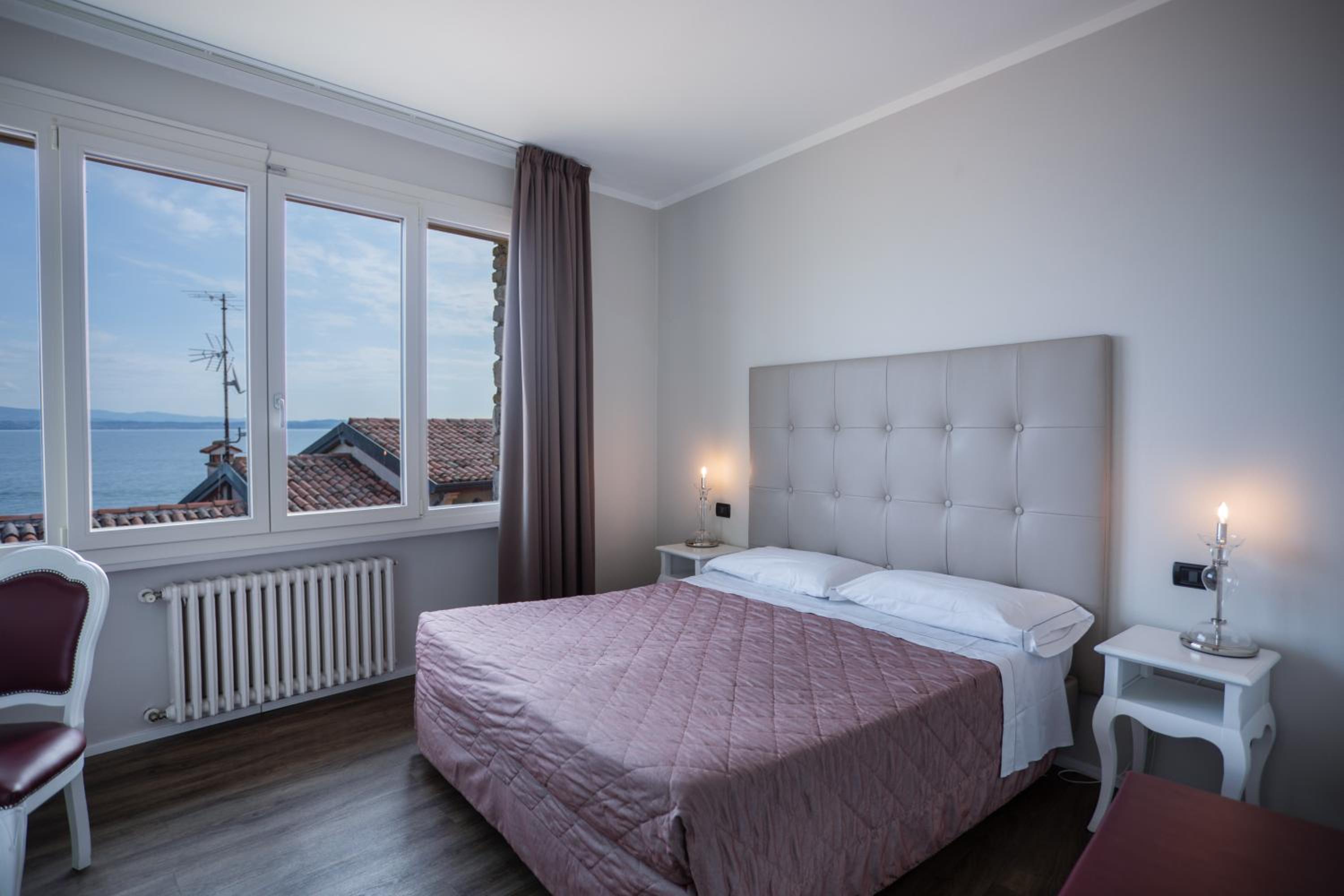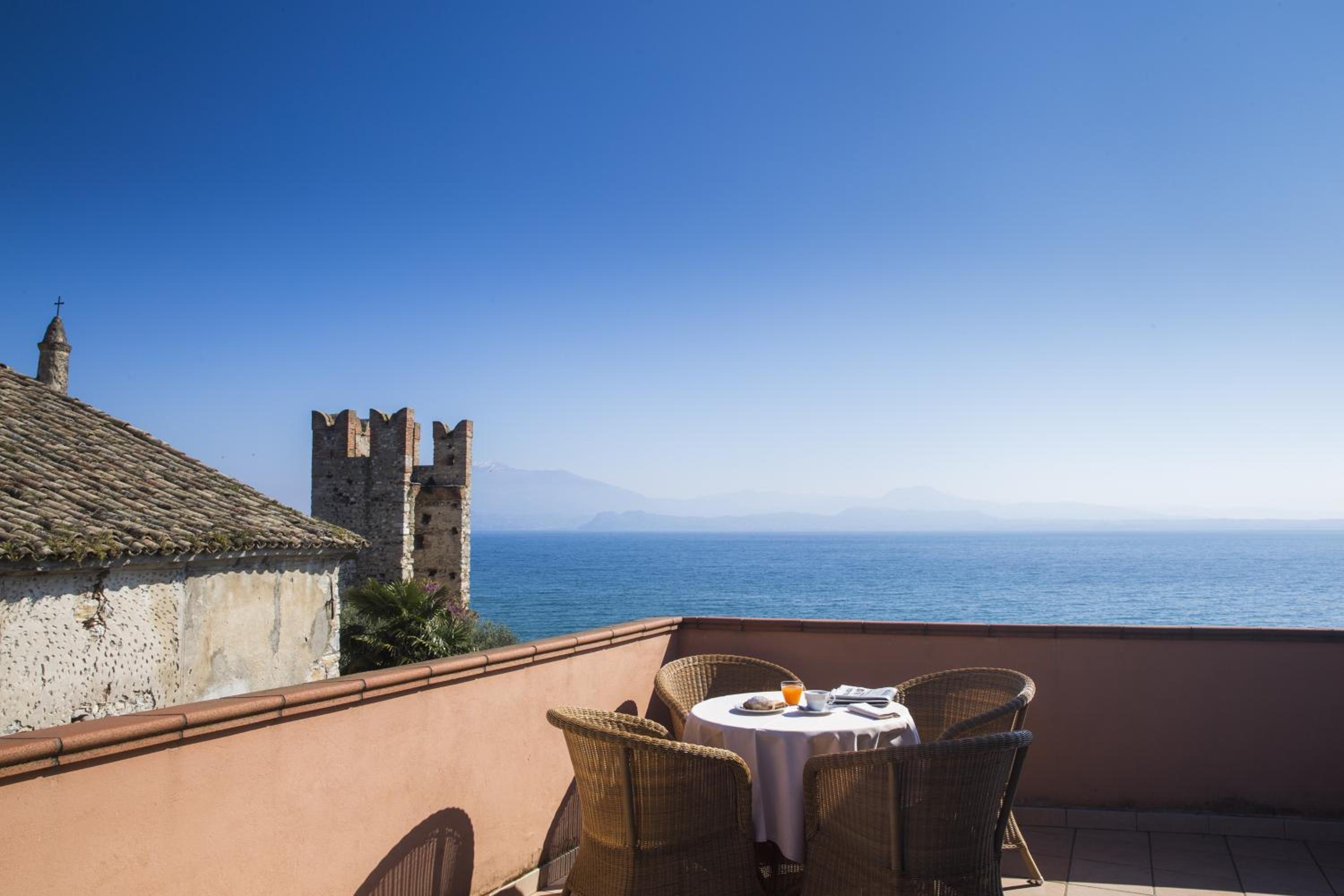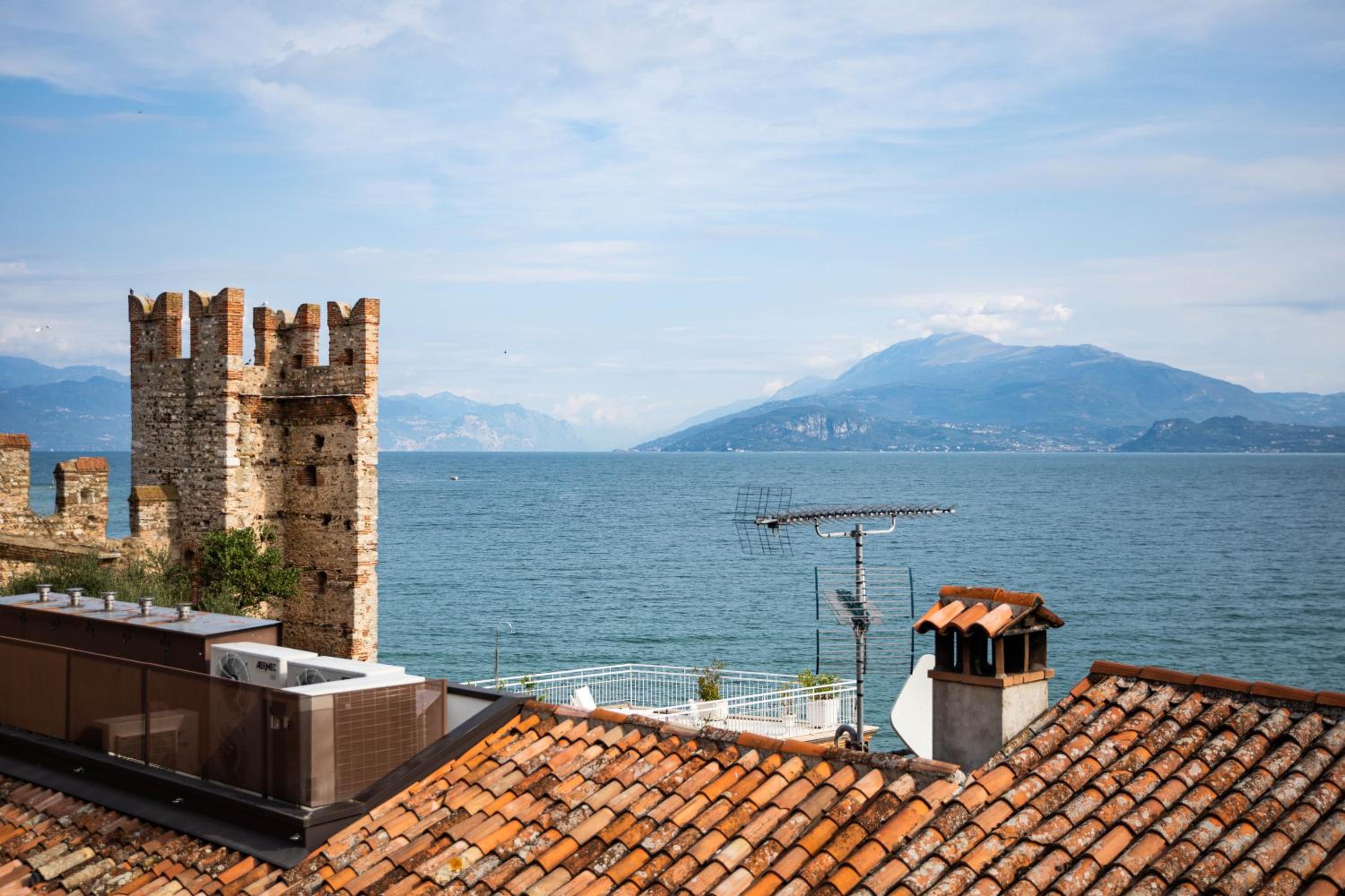 Die Dachterrasse mit Lounge und Sonnenliegen ist ein echtes Highlight – mit tollem Blick auf den See. Die Lage des Hotels mitten in Sirmione ist ideal, viele Restaurants und Bars sind direkt vor der Tür.