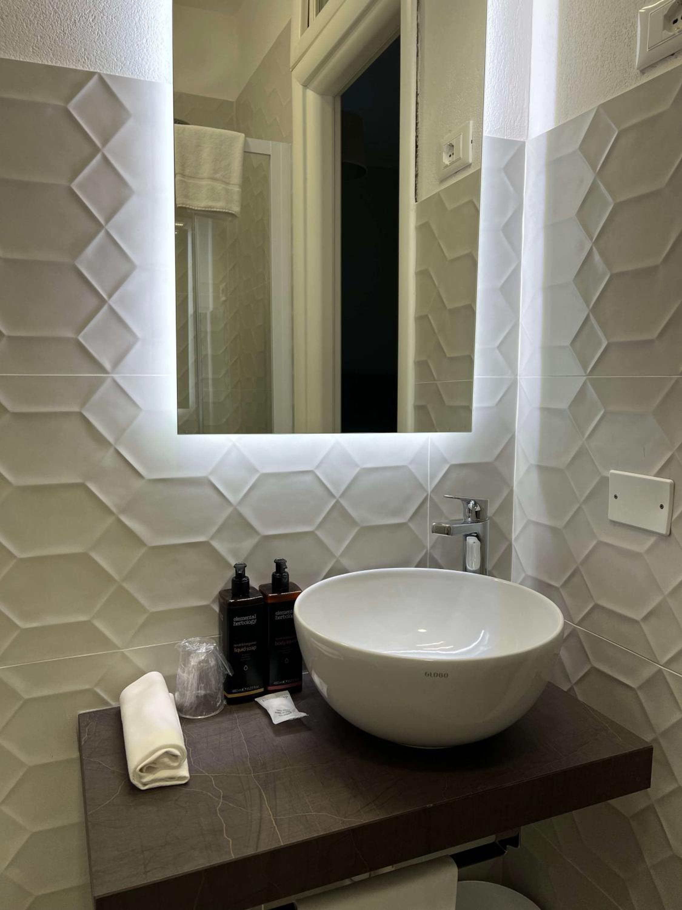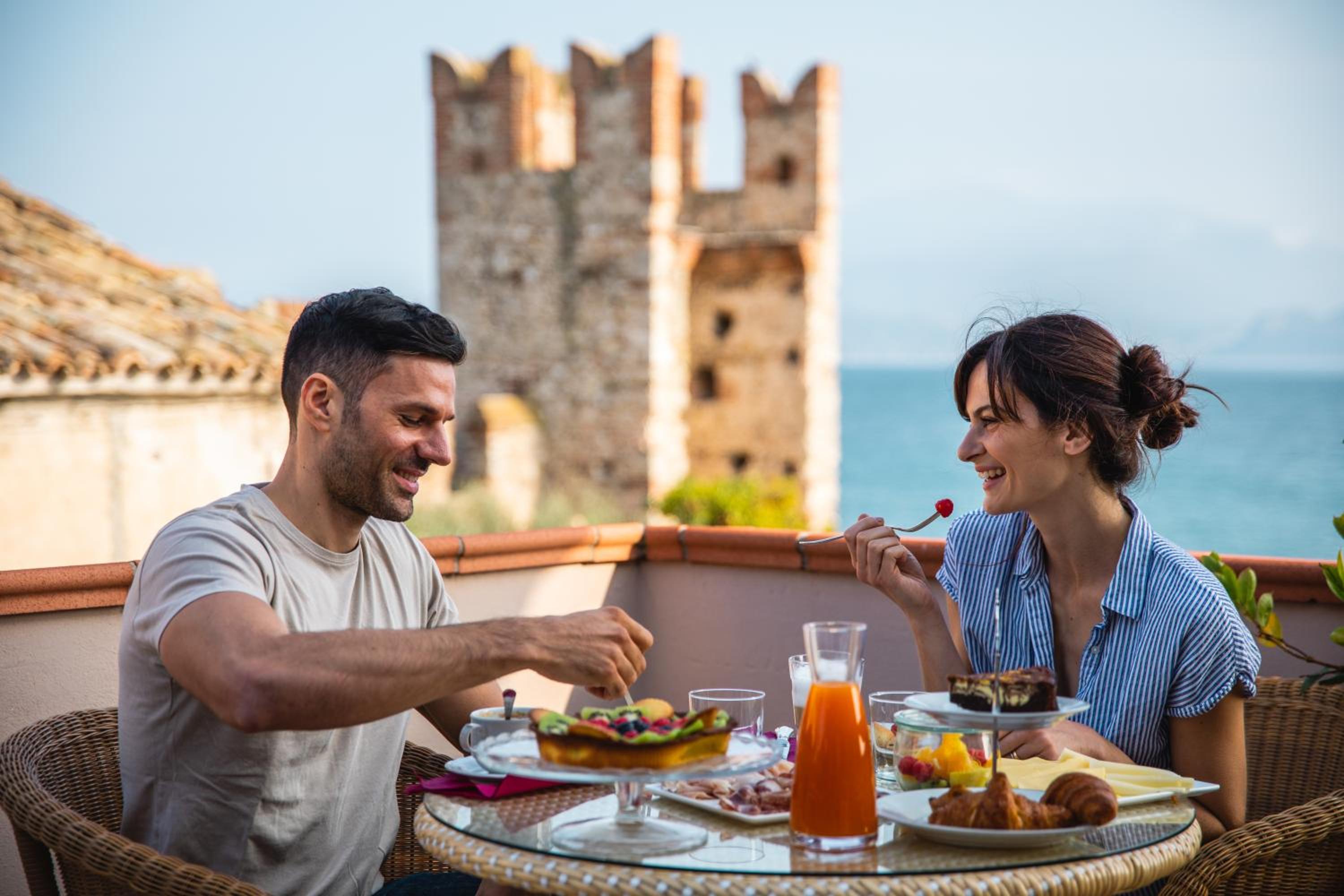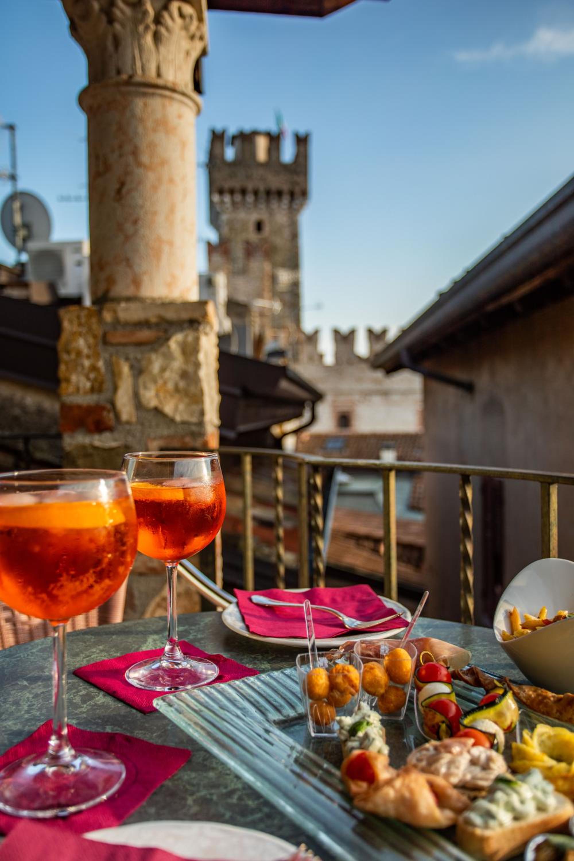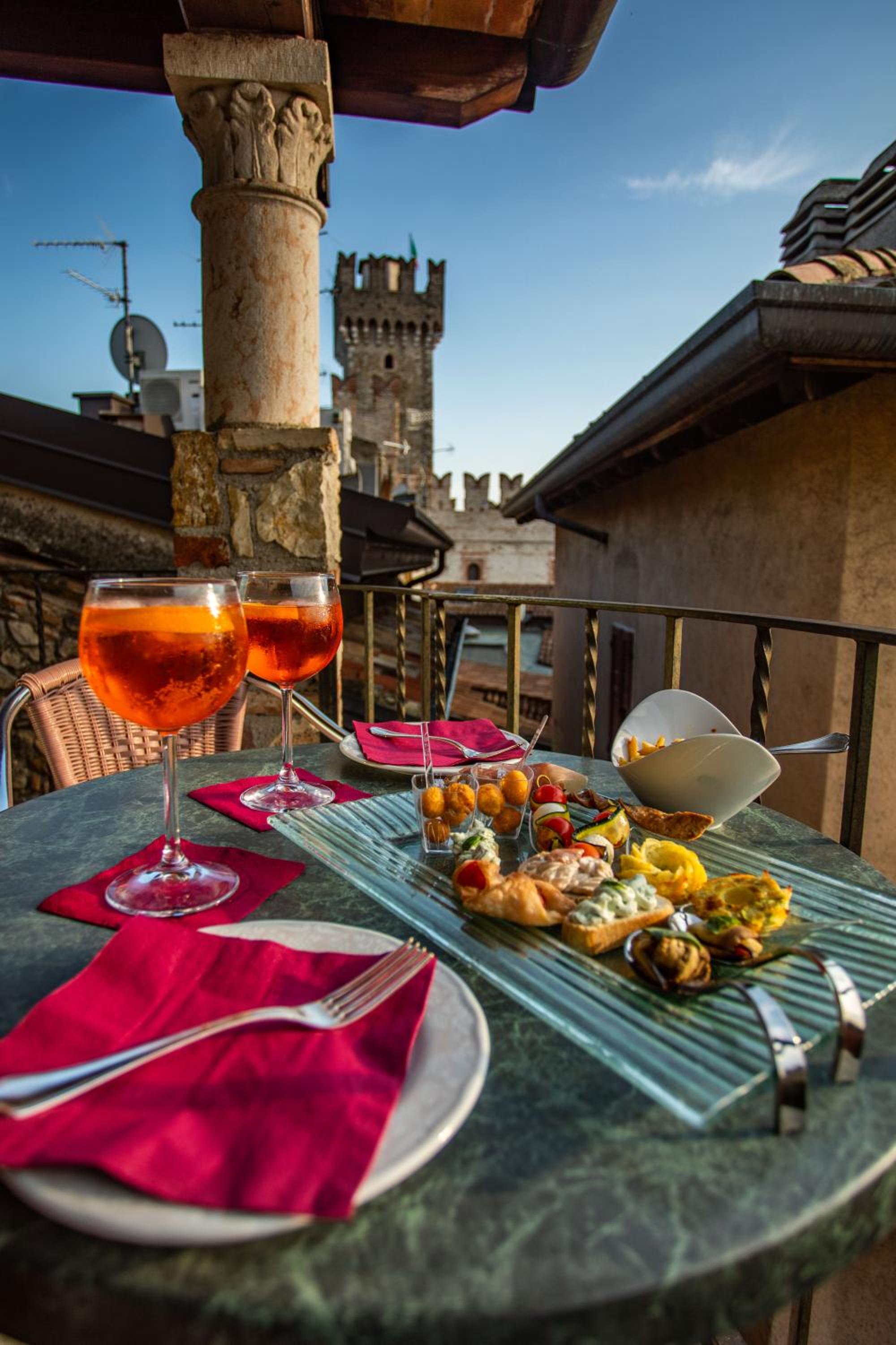 Die Dachterrasse mit Lounge und Sonnenliegen ist ein echtes Highlight – mit tollem Blick auf den See. Die Lage des Hotels mitten in Sirmione ist ideal, viele Restaurants und Bars sind direkt vor der Tür.