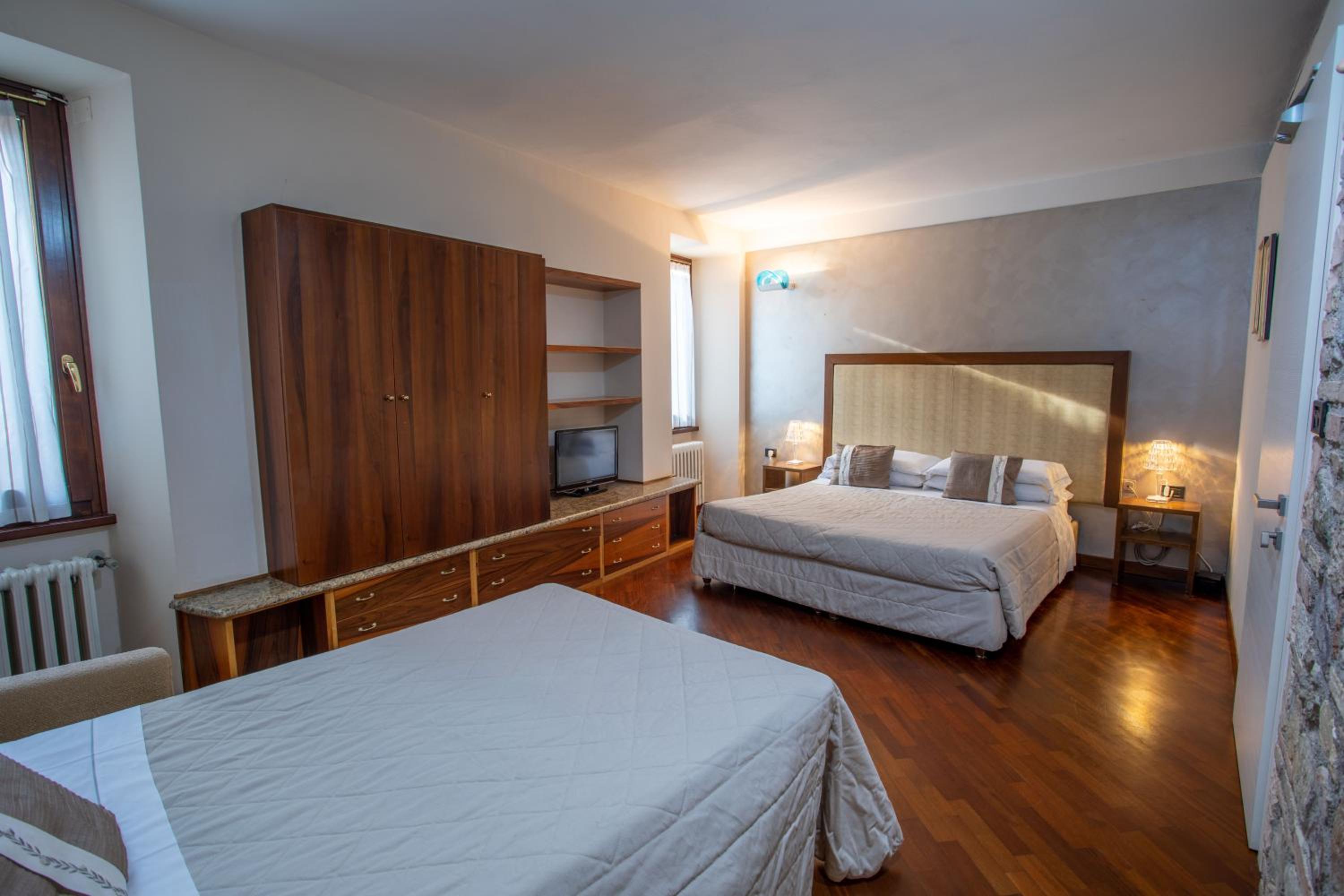Each en suite room at the hotel is elegantly furnished with a satellite TV, hypoallergenic mattresses, and some even feature large windows offering panoramic views of the lake. After a day of exploring, unwind in the tranquil terrace or the cozy internal garden.