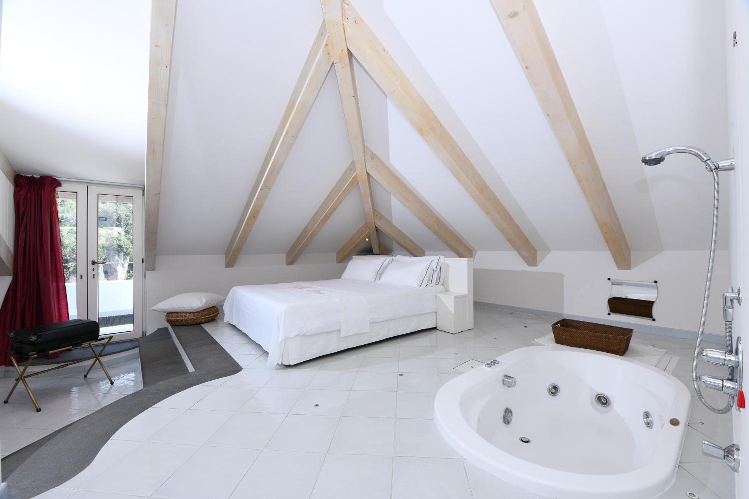 Neat character with incredible views that you can take in from adorable terrace area. Room nice. Well worth the walk up from the waterfront and then elevator up to villa. Loved access to still water, sparking water and juice all day.