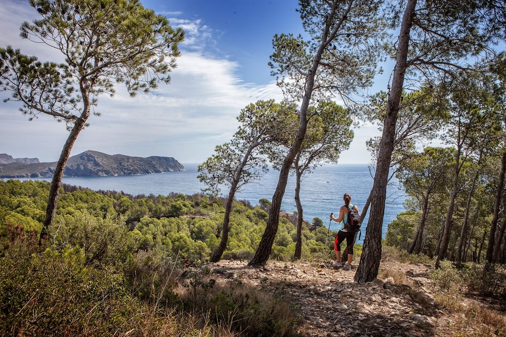 Ubicacion espectacular con vistas a la bahia de Roses i la playa de Almadrava. Piscina grande .Terrazas a la sombra de los pinos. Camino de ronda accesible. Comids de lujo en el restaurante. Desayuno excelente.