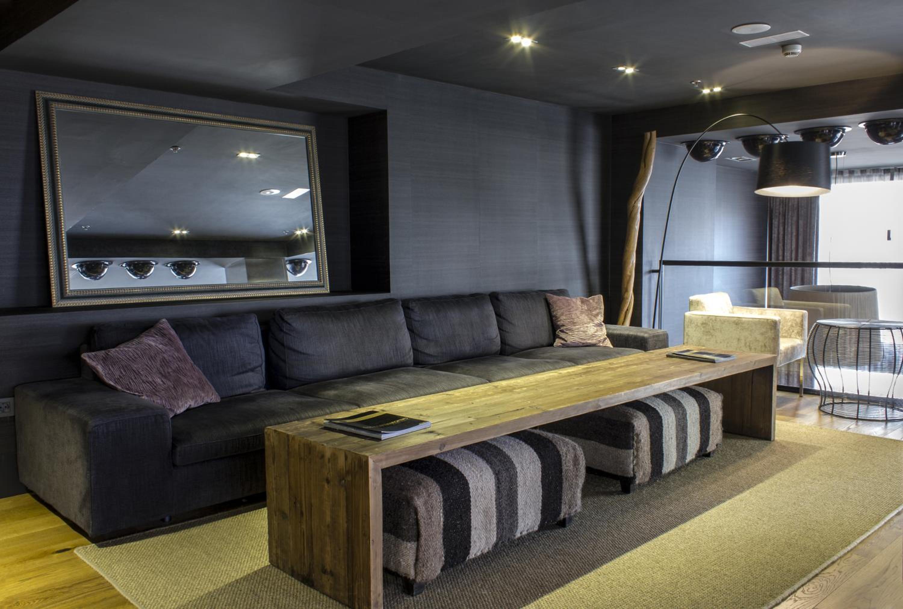 El sofa en el entresuelo para realizar reuniones es muy bajo y dentro de poco tiempo le duele la espalda. Es muy incómodo. No adecuado para sentarse con alguien.