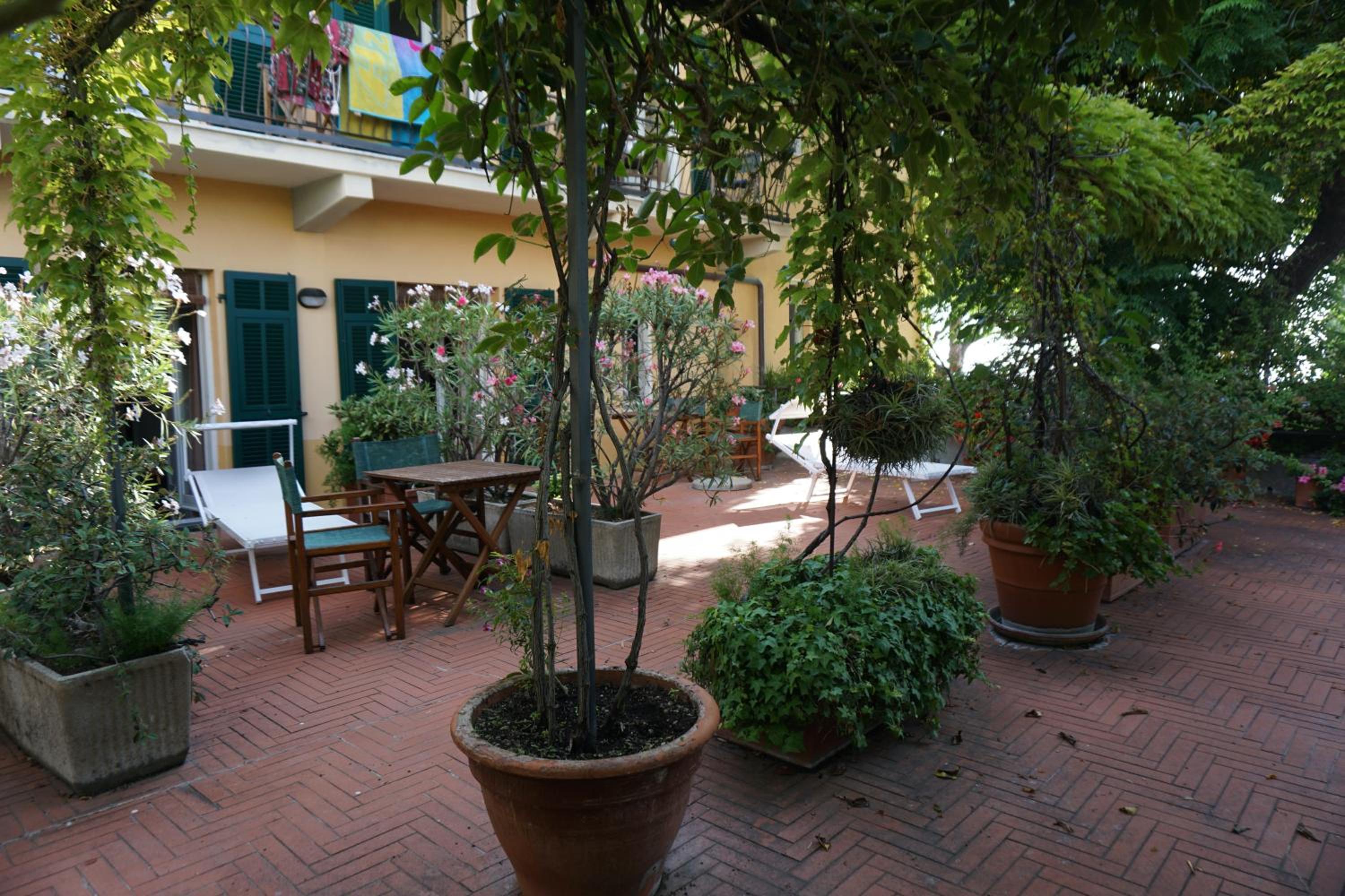 Hotel Beau Rivage offers a stunning view of the Ligurian Sea from its rich garden, allowing guests to relax in a renovated 18th-century villa with elegant furnishings and frescoed ceilings.