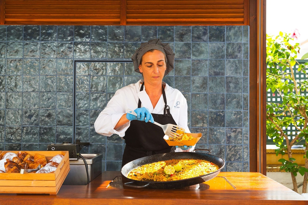 My husband and I visited this very Spanish hotel (16/09/25 - 30/09/25) as SAGA guests. We are very active, so location was important. It is located a couple of hundred yards from La Marineta beach and the promenade which stretches from Las Rotes around the bay to the marina. It is also a short 10minute walk from the town centre, Marques de Campo. The hotel is really immaculately clean, including the entrance, the bars, the restaurant and the garden area around the swimming pool. Our room (729) was very clean, thanks to Magdelena our cleaner, but it does need updating. The air con worked well, and there was always hot water for the shower; the blackout curtains were efficient. However, it is the staff that make the hotel so special. We had great SAGA hosts - Sylvia Sanchez and Alison - but the hotel staff were also good. The receptionists were unfailingly polite and helpful; the restaurant staff were always cheerful and friendly. The food at the hotel was served buffet-style: for mass catering, it was good - there was a very varied salad bar, and the hot meals were also pleasant - standout was the fresh fish available daily. There were also paellas, pastas and meat dishes, and a choice of vegetables and fresh fruit. The cooks frequently appeared, ensuring the serving areas were spotless. There was an animation team, and most days there were six activities on offer for adults. We both think the hotel is very good value - we have visited in the past with SAGA, and each time there are hotel improvements. We have booked again for Christmas and look forward to it.