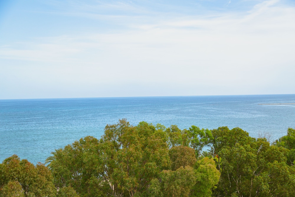 Room spacious , clean , modern, with a kettle and small fridge. Air con in the room very good. I had a 5th floor room with a balcony overlooking the pool and with a view of the sea , with a fabulous sunrise every morning.