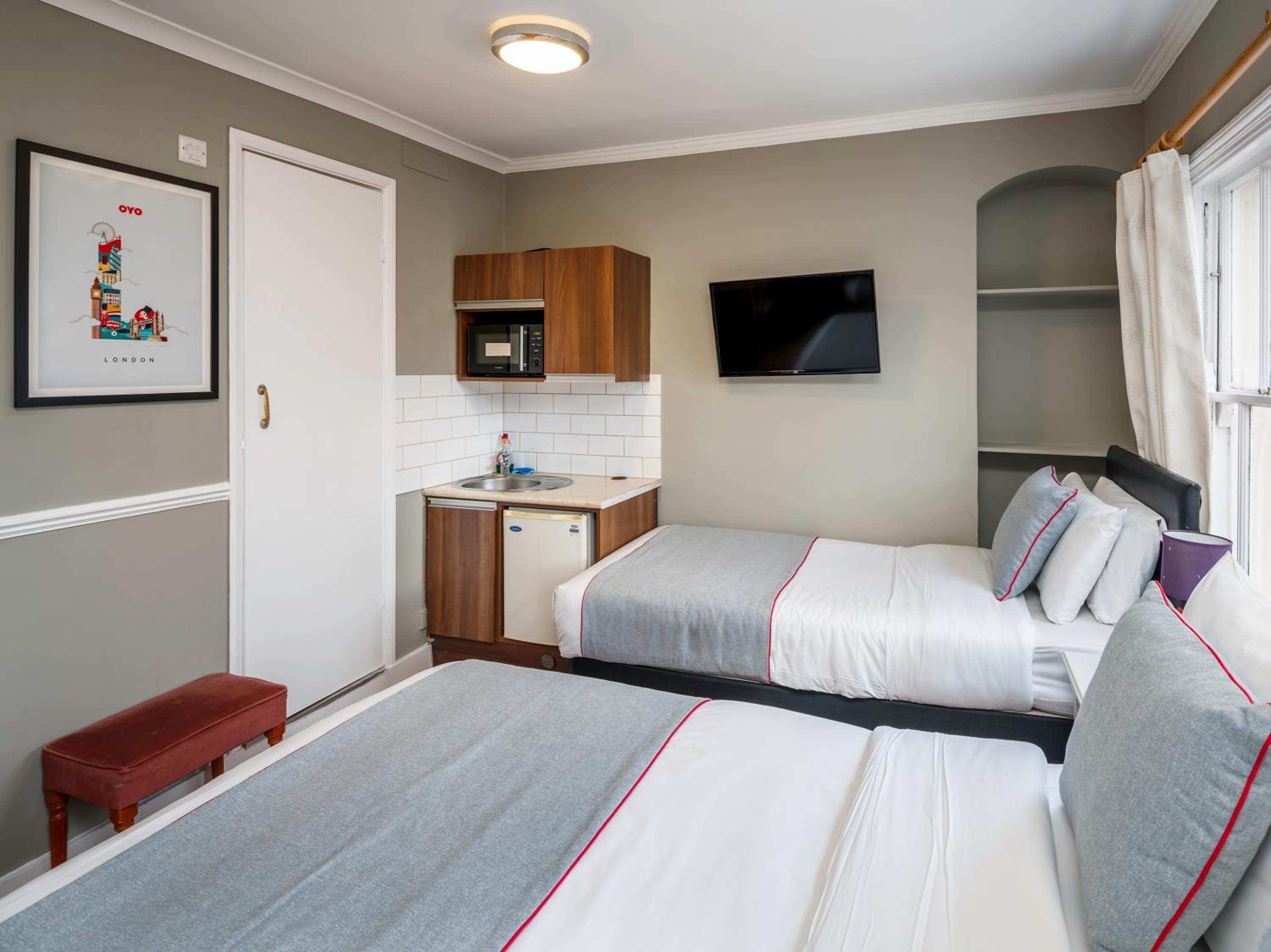r 5 people. Kitchenette dies not have basin or tap. There is a kettle but not a plug. Kettle to stand on beside table. The room is not suitable for 5 people nor was it serviced daily. Fridge does not work. Windows cannot open for more than 3cm. It was pointed out to reception who did about fridge.