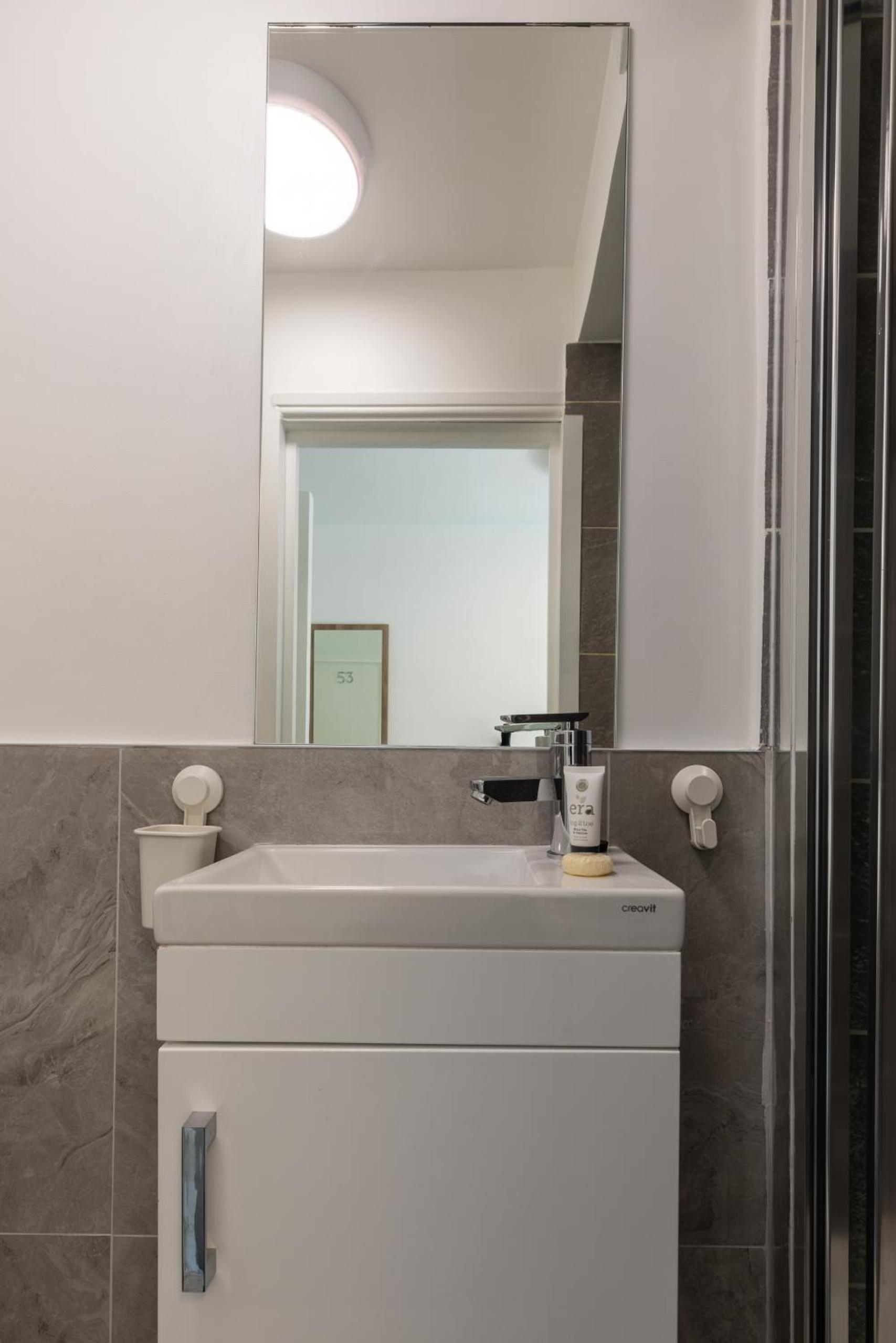 Il bagno è estremamente piccolo, non c’è neanche un ripiano per appoggiare le proprie cose.