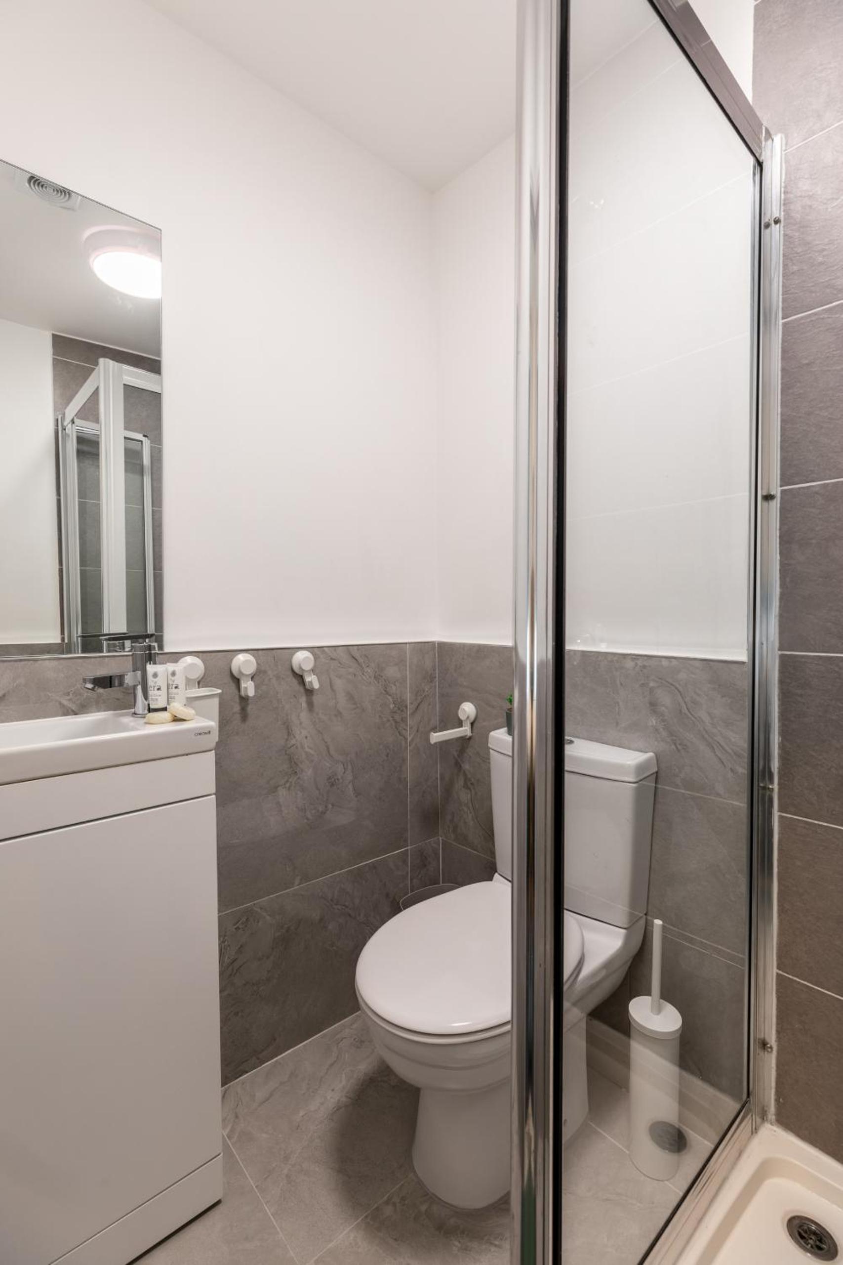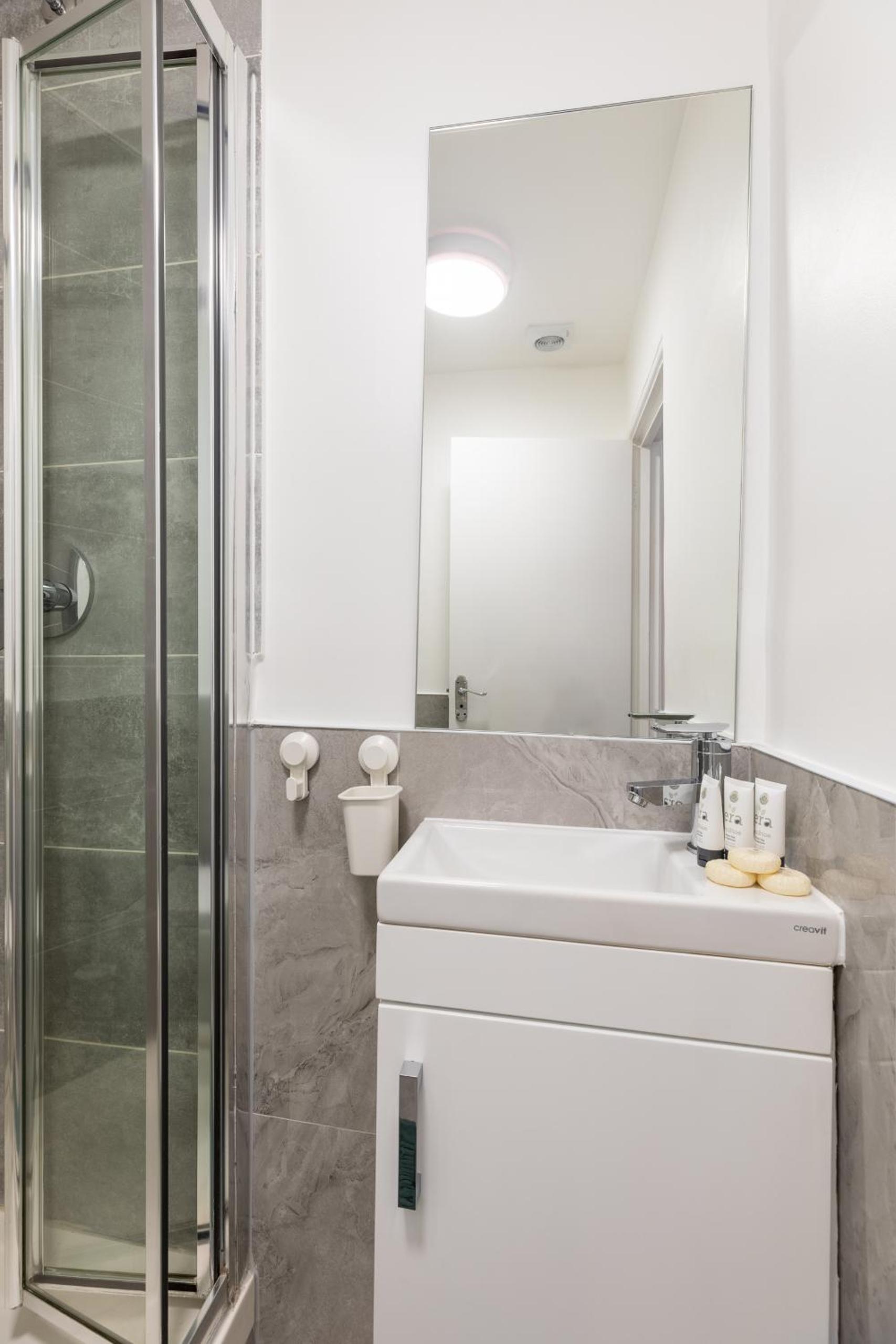 Nije kao na fotkama, barem ne onima koje su mi bile oznacene pri bukiranju smjestaja. Dosta udaljeno od metroa, koji je bio jedina opcija pri slijetanju u 23h, nekih 17 min hoda od postaje Paddington, medutim preko dana nema problema. Mozda glupa zamjerka, ali u sobi nigdje nije bilo smjestaja osim u kupaoni, pa je spremanje ujutro za dvije cure bilo hekticno i moralo biti planski poslozeno😅 Medutim, u usporedbi s ostalim negativnim recenzijama stvarno mislim da je okej, za tu cijenu može biti bolje (ispalo nas je oko 100e noc i to pola godine unaprijed rezervirano), a doslovno sve sto imas u sobi je krevet i mala kupaona. No, nije nam smetalo, samo napominjem