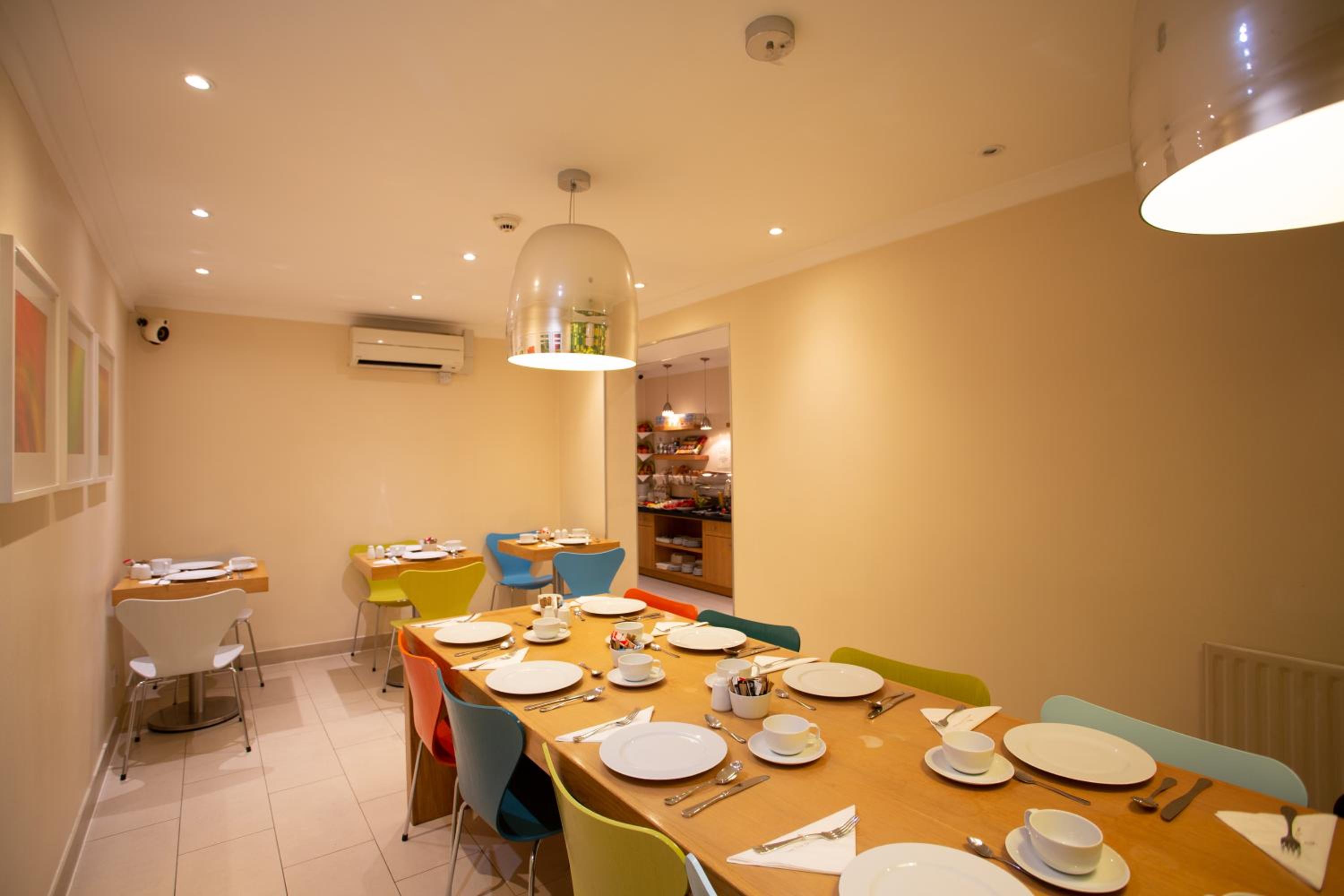 A fantastic location. Easy check in. Staff very friendly and helpful. The breakfast was great, cereals, cheese, cold meats, fruit, orange juice tea/coffee. Room size was good, two single beds moved together to make a double wasn't the most comfortable. Bathroom was basic but the towels were soft! It was a room facing the back of the hotel so no views but no street noise either! TV, air-conditioning fridge along with tea/ coffee making facilities made it a great place to chill after a very busy day touring London. Definitely recommend this great hotel and hopefully get back there in the near future.