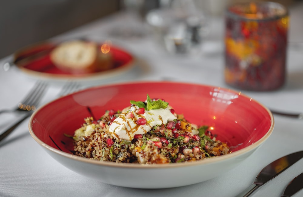 Savor international cuisine at our exquisite "Q" Bar/Restaurant, where culinary delights await. Enjoy room service during limited hours, or indulge in a hearty full breakfast to kickstart your day.