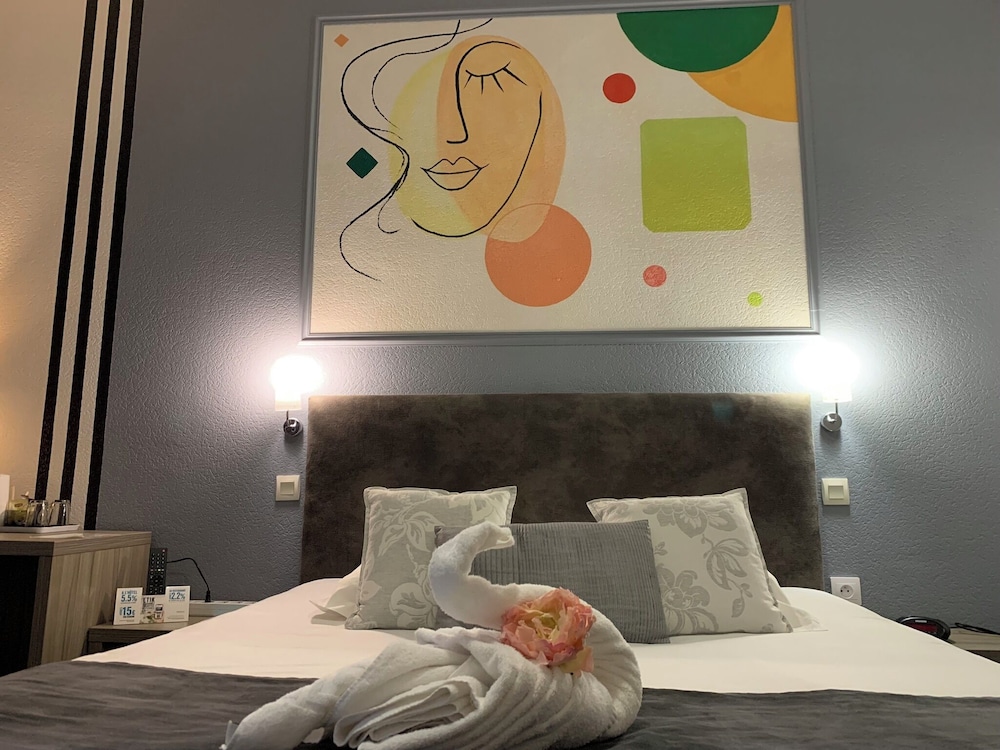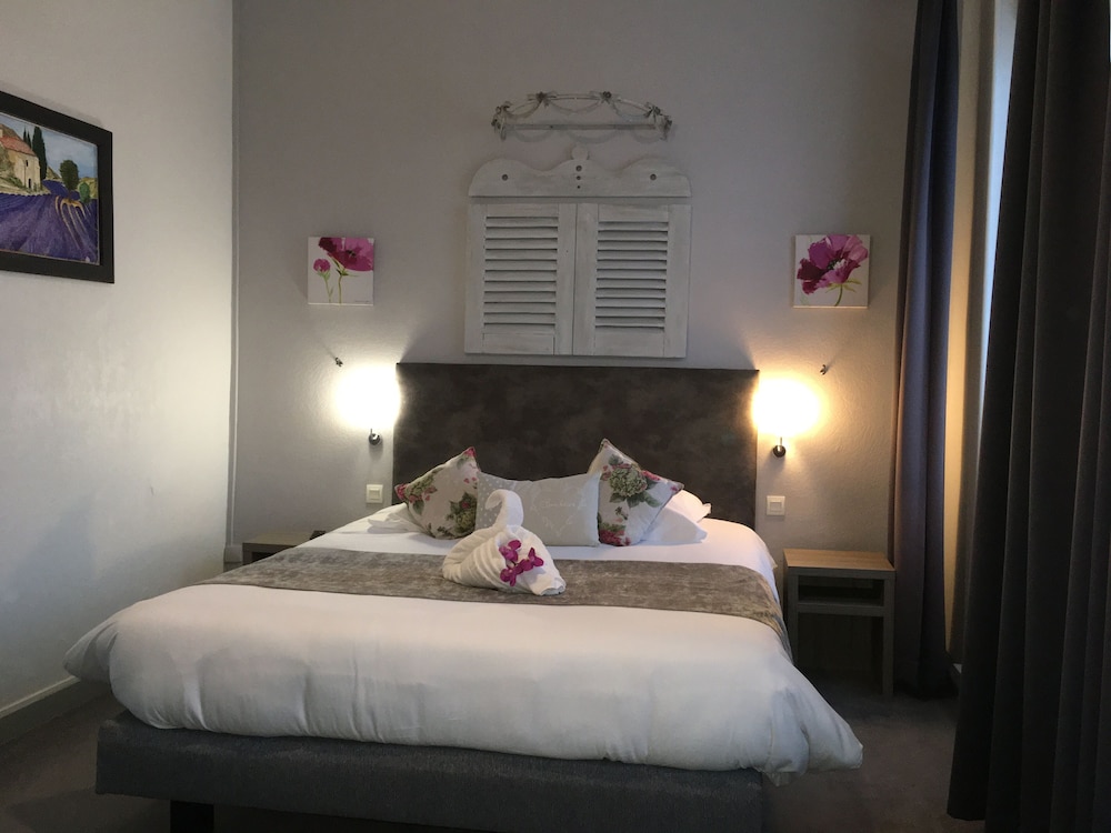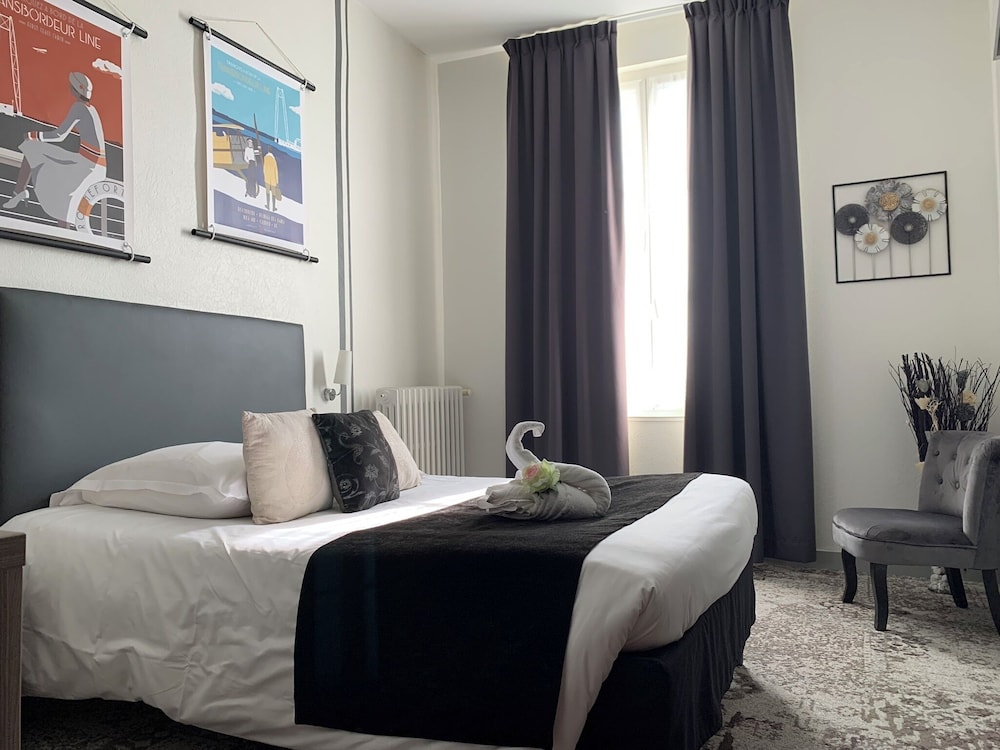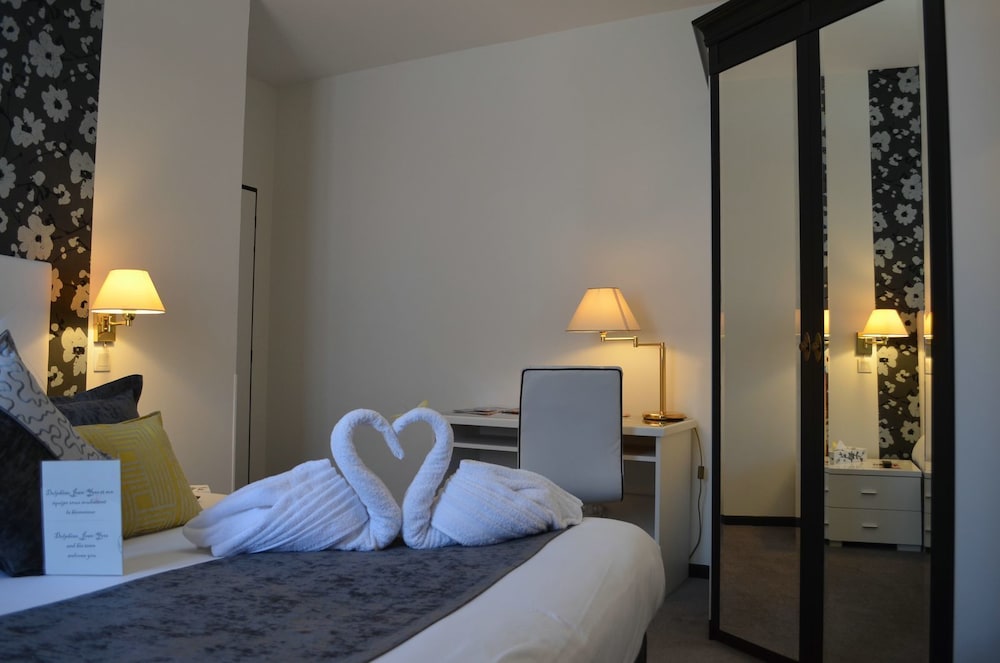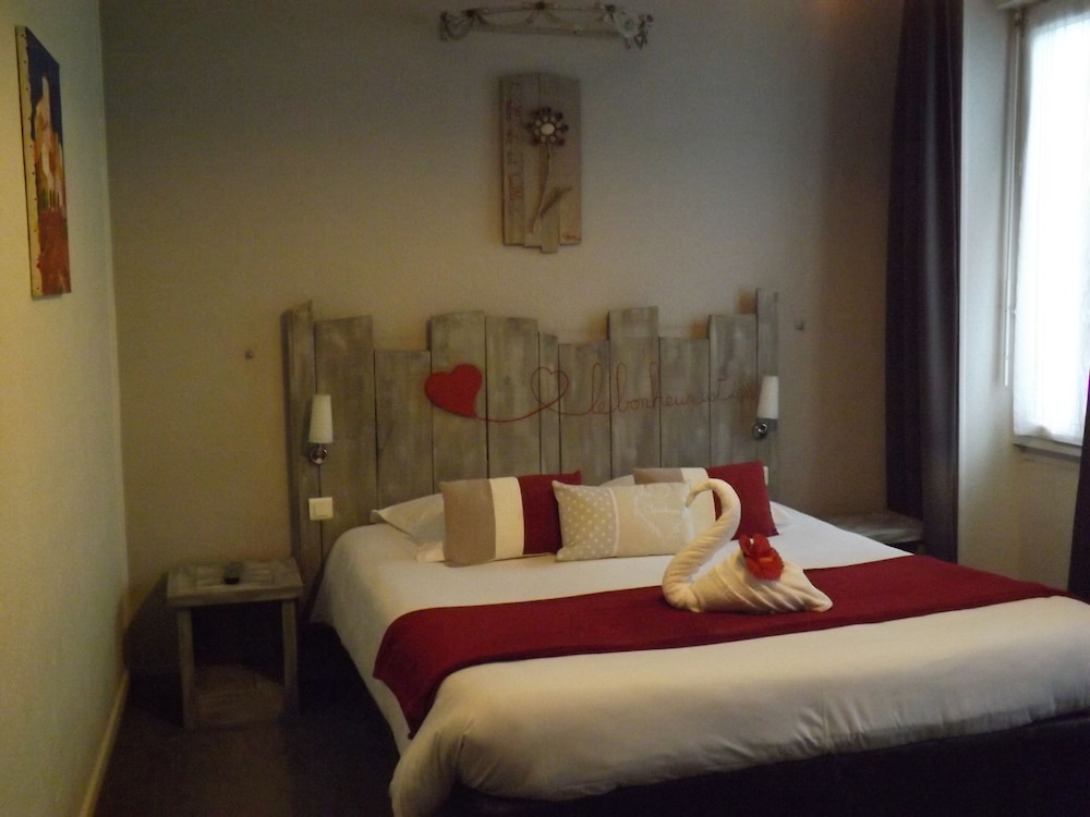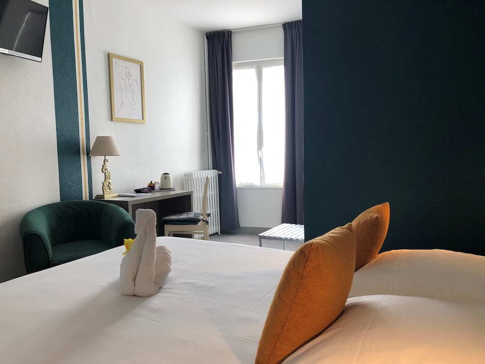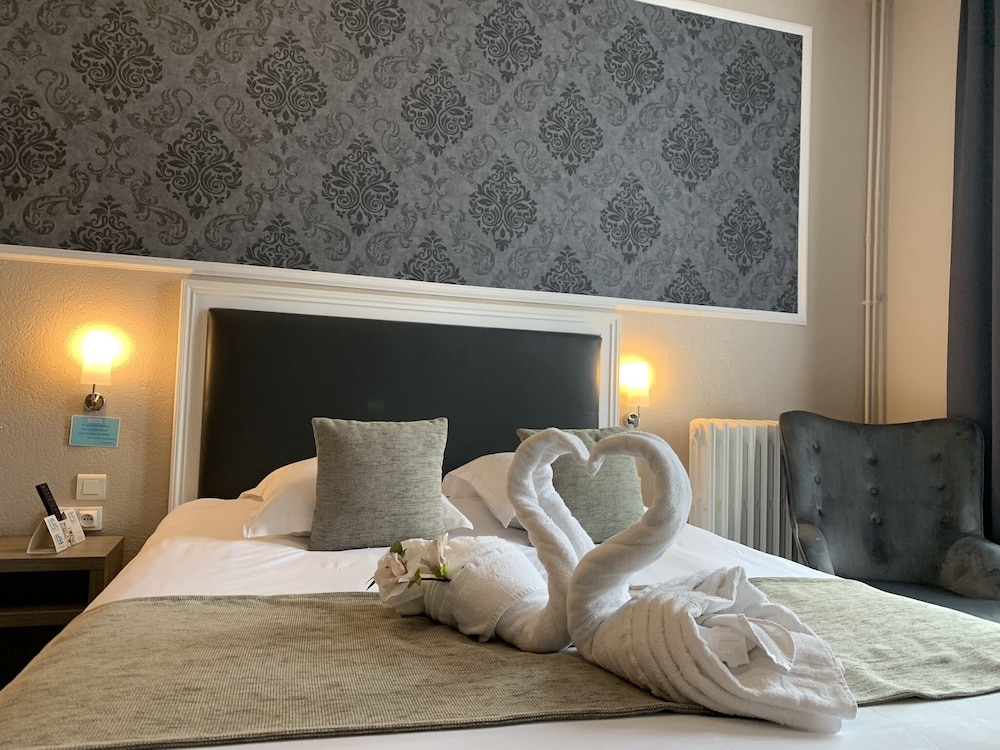 Très bel hôtel avec grand parking gratuit à proximité, proche des commerces. Chambre et salle d'eau très propre et confortable, volets plus rideaux des rangements un bureau et magnifique cigne en serviette c'est très accueillant. Personnel très aimable, dommage qu'il n'y ait pas de service restauration. Mais hôtel vraiment atypique même si il y a 3 etages sans ascenseur, pour préserver le patrimoine, je trouve merveilleux et vraiment historique. Préservons notre patrimoine pour savoir d'où nous venons, on peut se ressourcer.