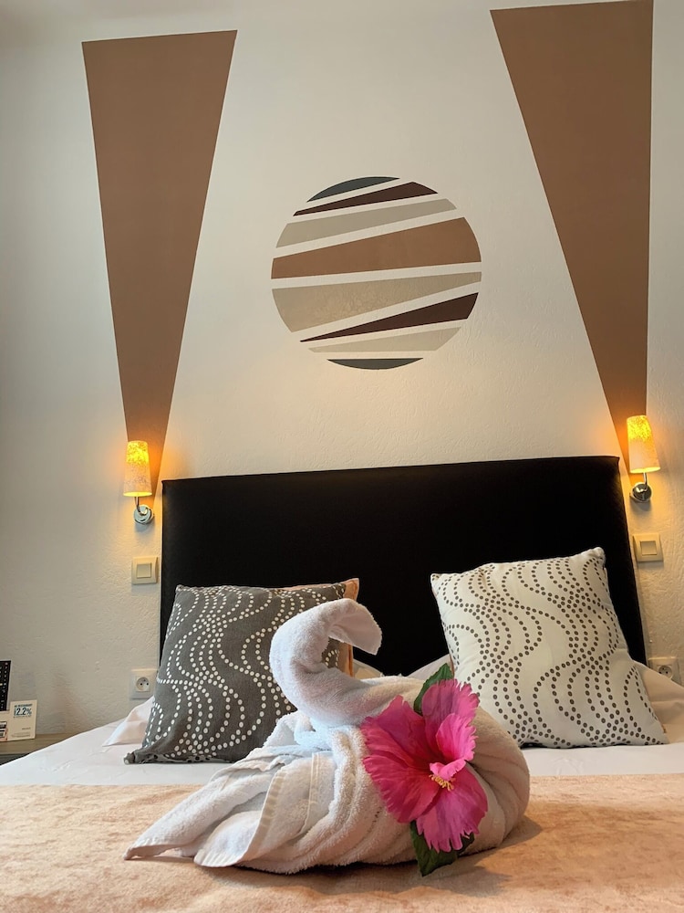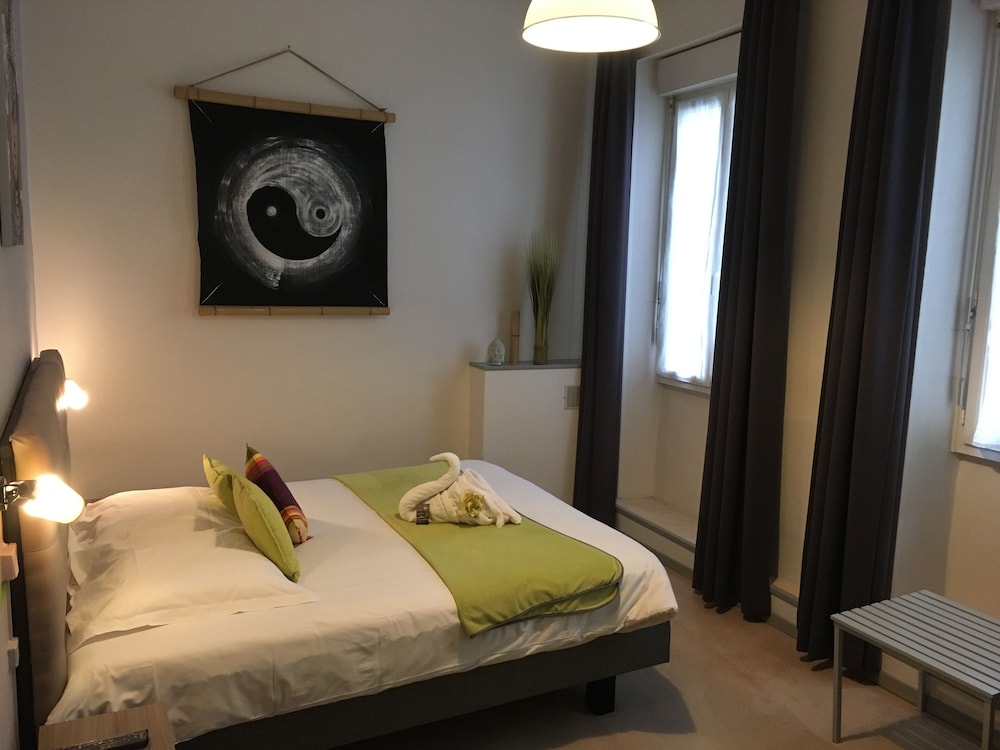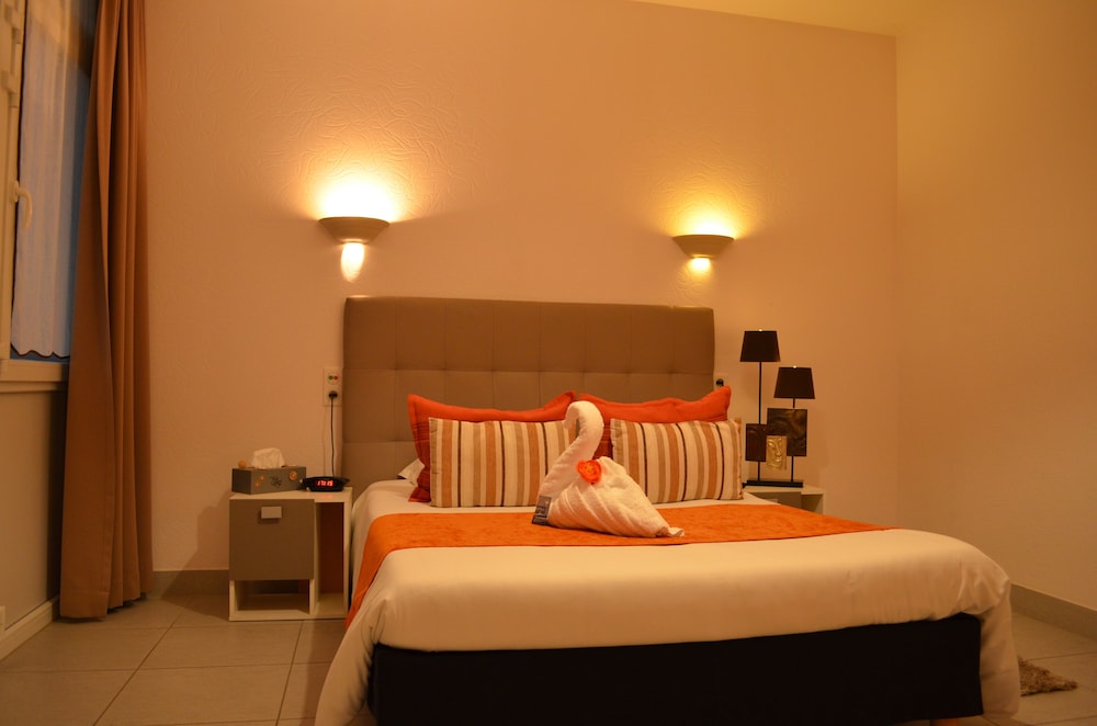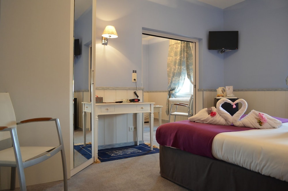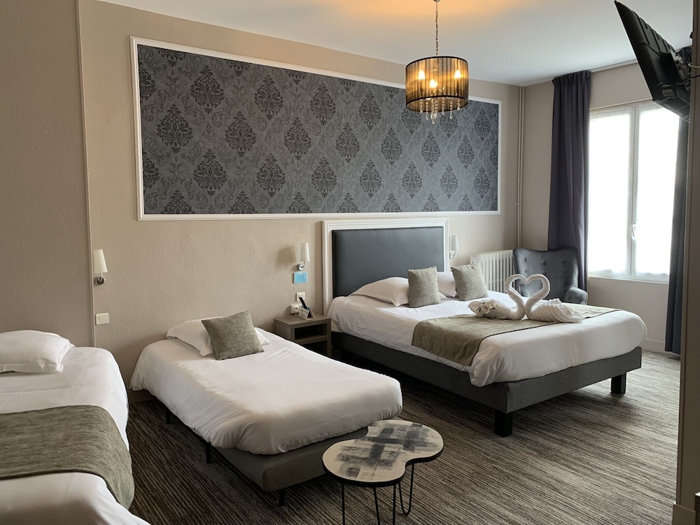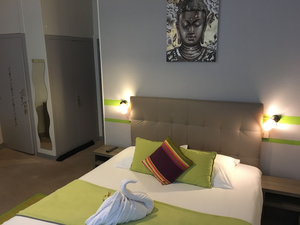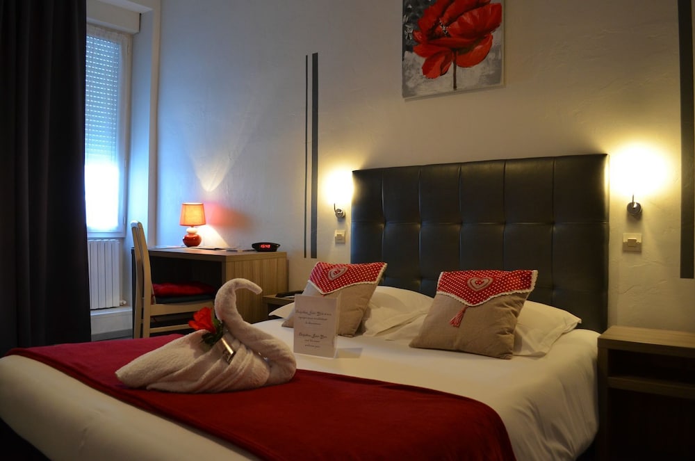 Très bel hôtel avec grand parking gratuit à proximité, proche des commerces. Chambre et salle d'eau très propre et confortable, volets plus rideaux des rangements un bureau et magnifique cigne en serviette c'est très accueillant. Personnel très aimable, dommage qu'il n'y ait pas de service restauration. Mais hôtel vraiment atypique même si il y a 3 etages sans ascenseur, pour préserver le patrimoine, je trouve merveilleux et vraiment historique. Préservons notre patrimoine pour savoir d'où nous venons, on peut se ressourcer.