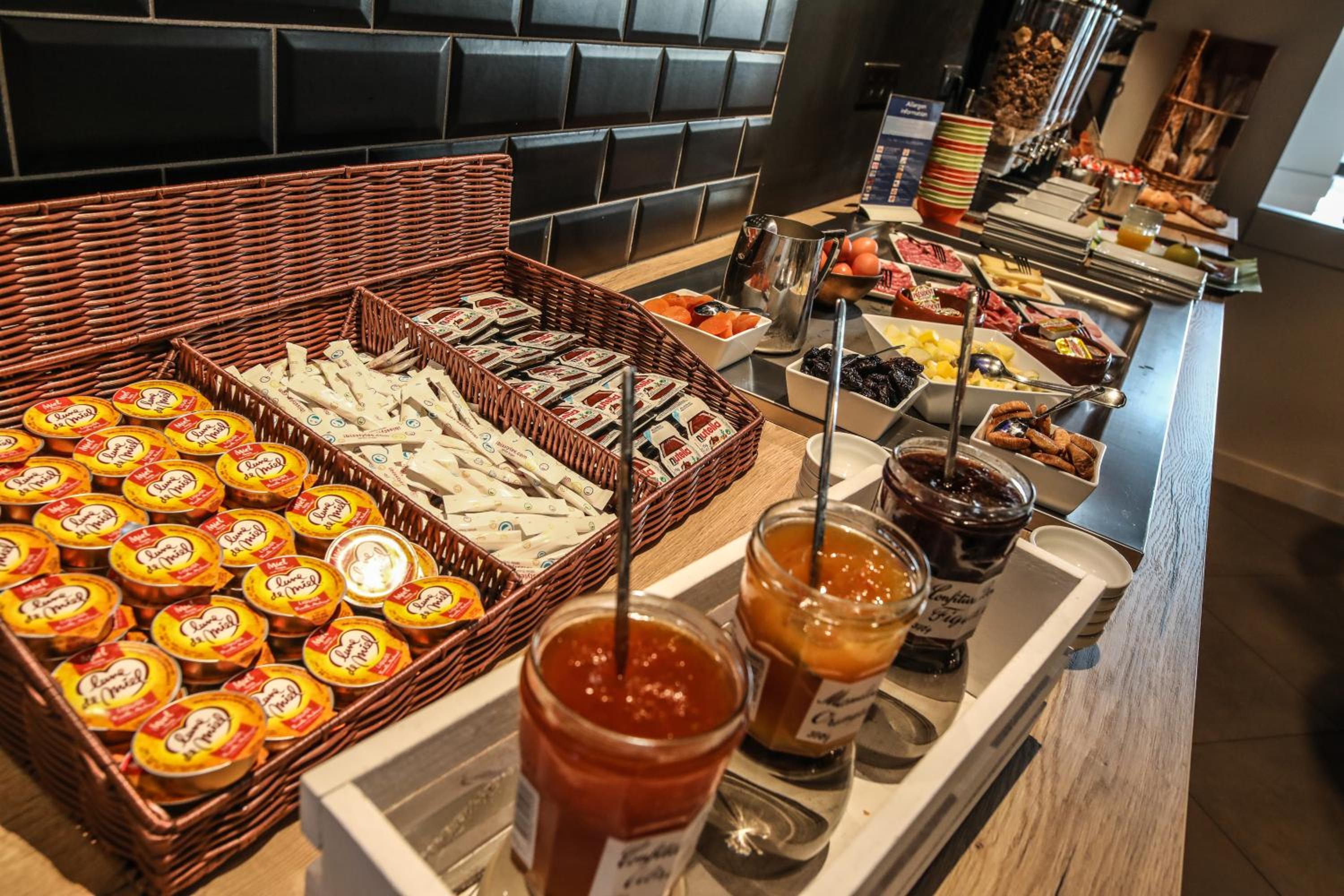 super petit déjeuner oranges pressées, eau détox, fromages d'Auvergne, ++