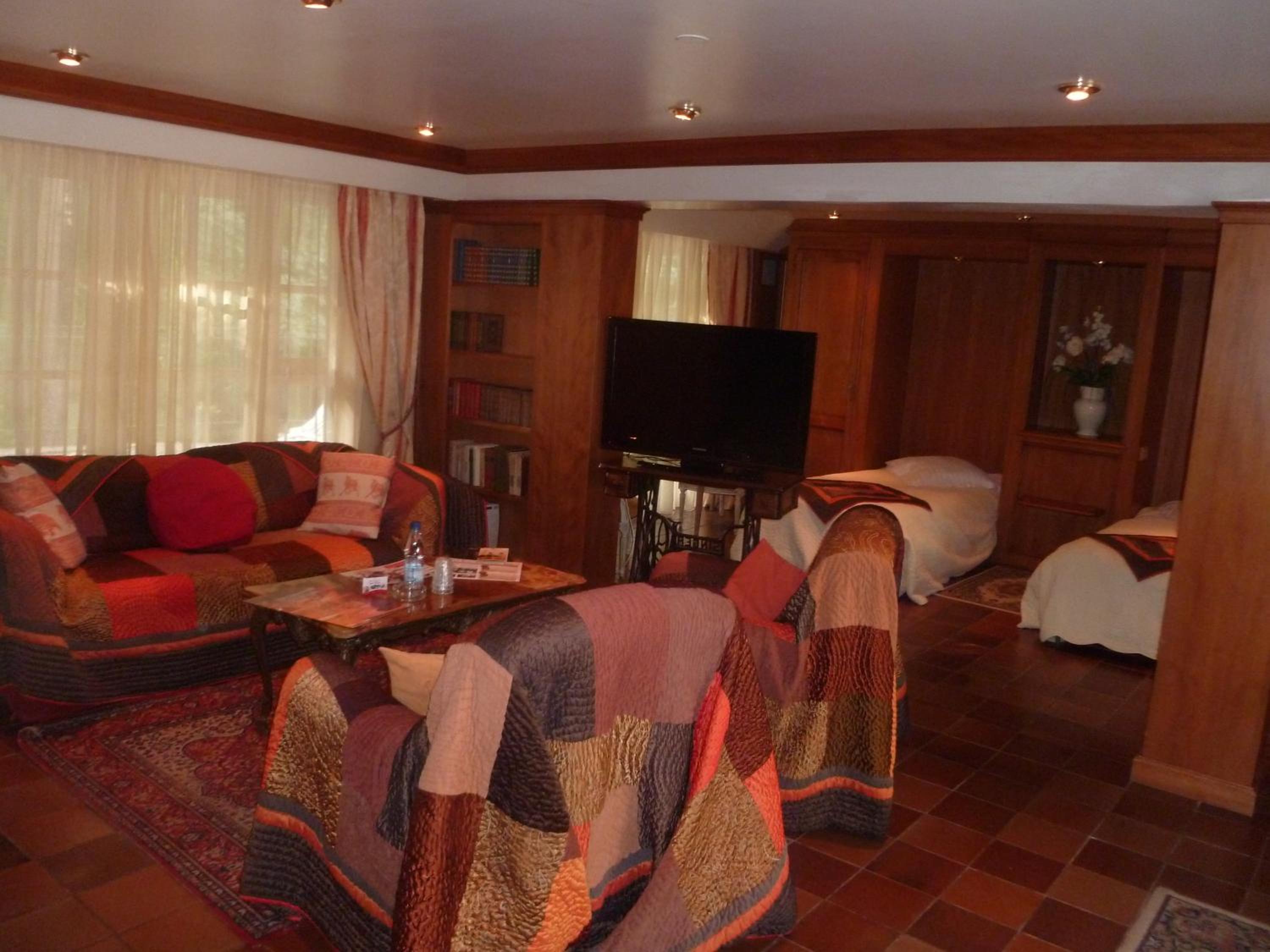 Chambre confortable, hotel atypique chouette, pettit dej. agréable sur une terrasse ombragé dans la fôret