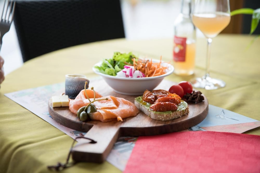 Endroit magnifique au milieu des vignobles , chambre spacieuse mais très déçu par la salle d'eau .minuscule avec douche exiguë se fermant avec un rideaux de douche . Ce n'est pas du tout ce que j'attends de ce genre d'etablissement . Restaurant d l'hôtel ne pouvant accueillir des clients par faute de personnel .... Pas teste mais prix exorbitant 17euros !!! Pour un petit déjeuner