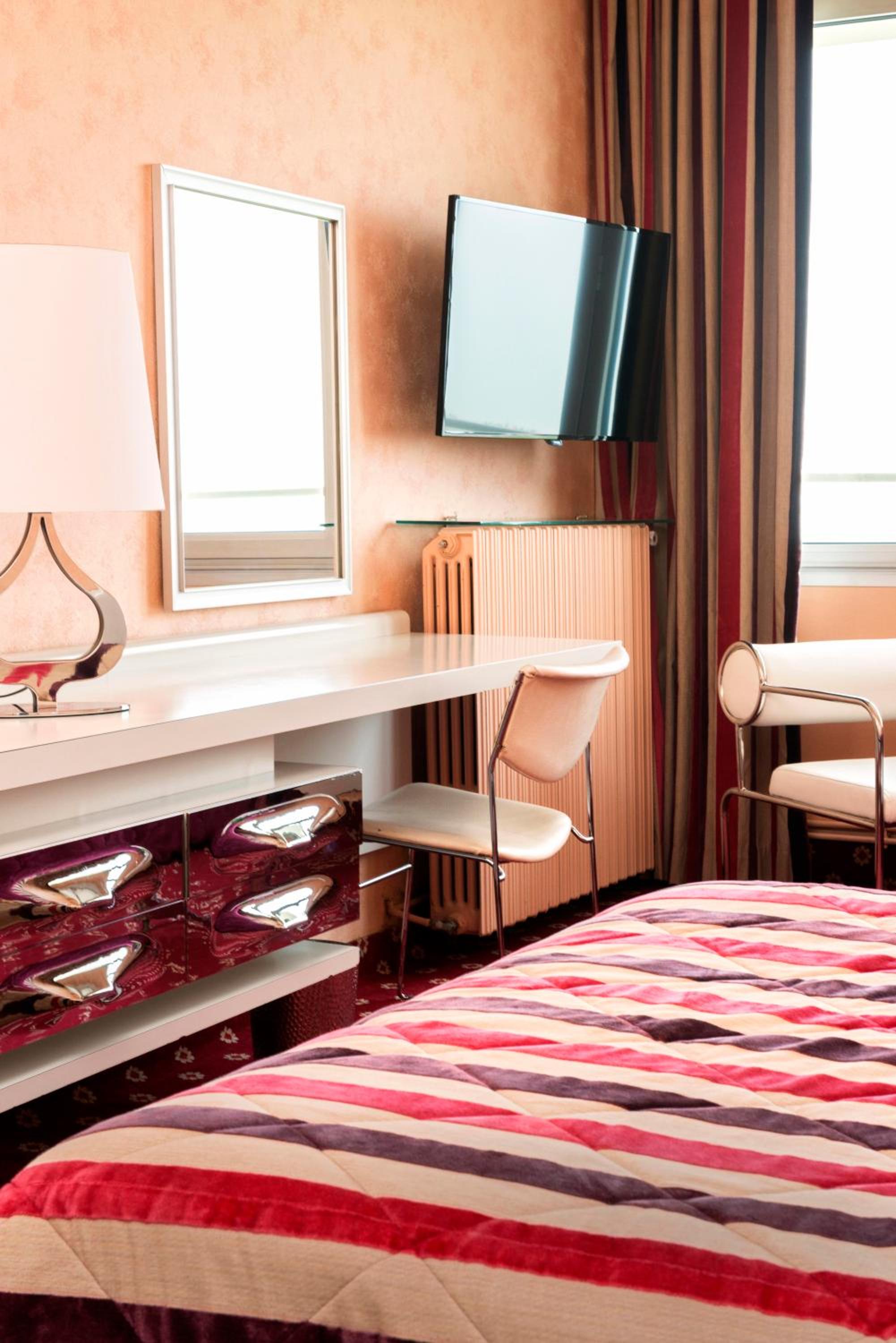 Intérieur un peu old school mais ça fait son charme. Par contre la chambre est moderne et de qualité sauf la salle de bain d’une autre époque