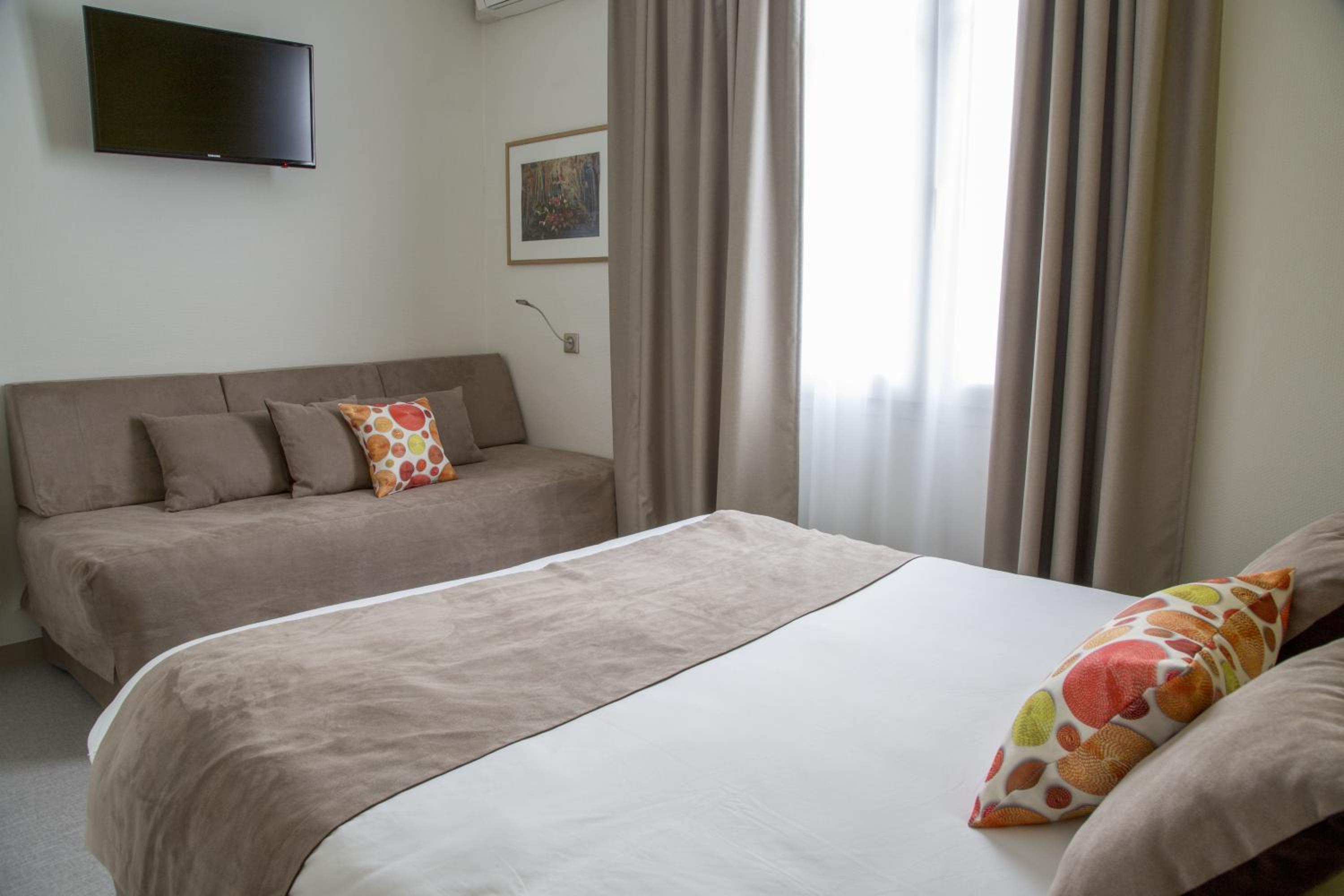 The soundproofed and air-conditioned guest rooms at Chaptal ensure a peaceful stay. Each room features a private bathroom and a TV, guaranteeing a comfortable and relaxing retreat after a day of sightseeing.