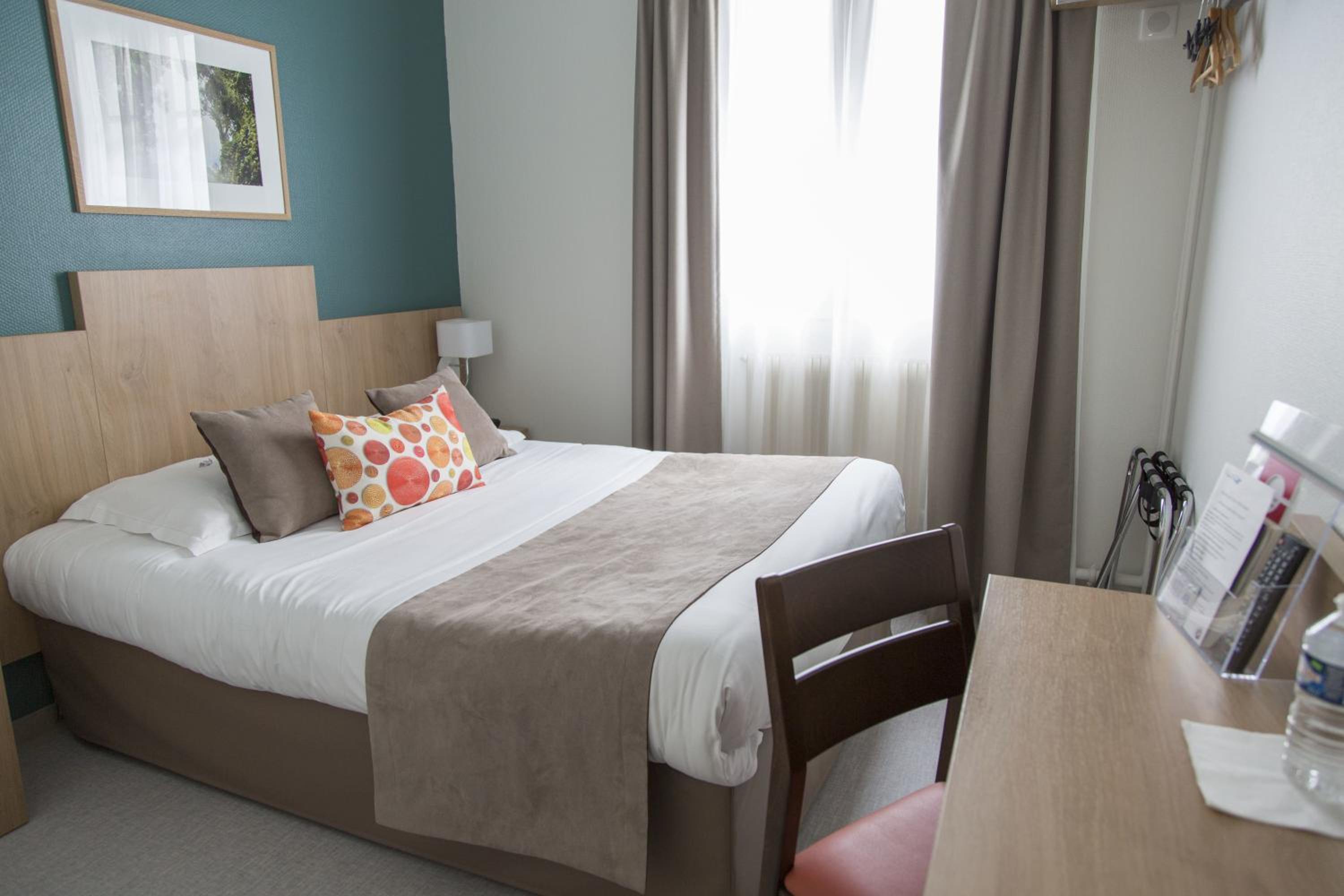 Bon accueil . Bonne literie , bien chauffé . Chambre et ensemble de l'hôtel plutôt agréable . Très bien situé . Globalement , un bon rapport qualité prix .