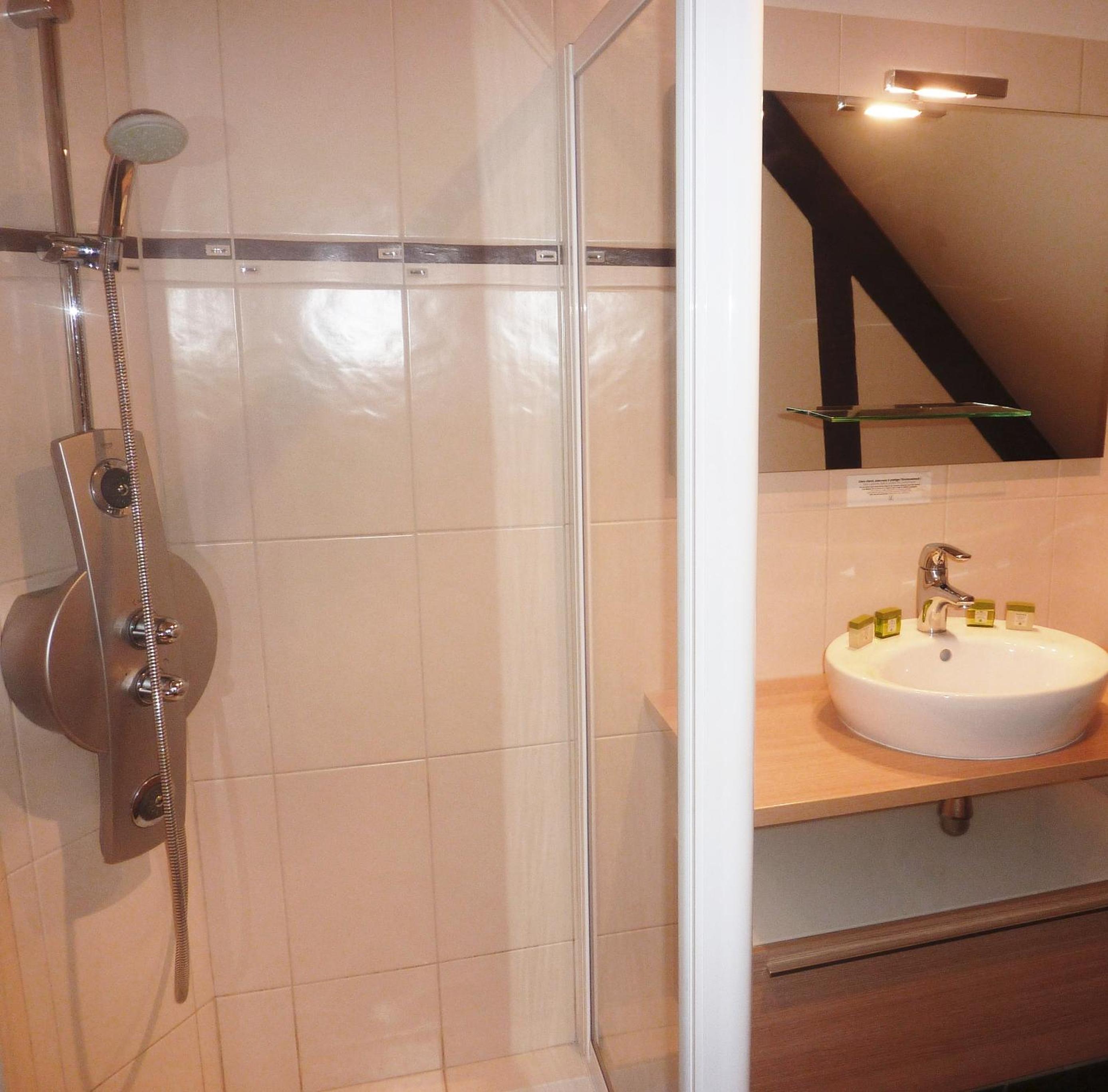 L’emplacement des chambres devant le petit parc est très agréable, la chambre est correcte et la salle de bain nickel