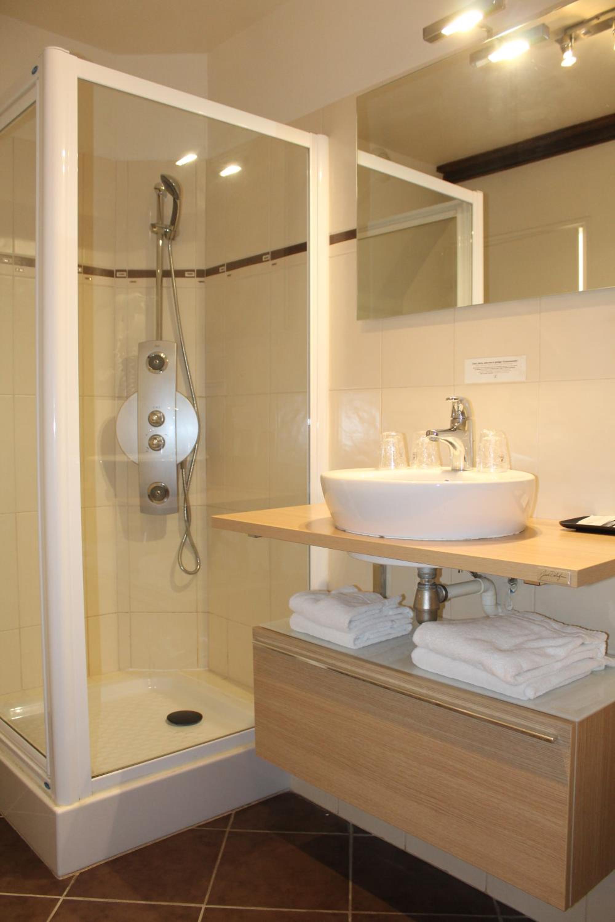 Wir hatten ein sehr kleines Zimmer mit einem winzigen WC-Bad im Haupthaus, nachdem wir das ursprünglich reservierte Zimmer im Park nicht akzeptiert hatten. Dieses Zimmer verfügte über kein Fenster, sondern lediglich ein kleines hublot , war dunkel und roch nach Feuchtigkeit.“