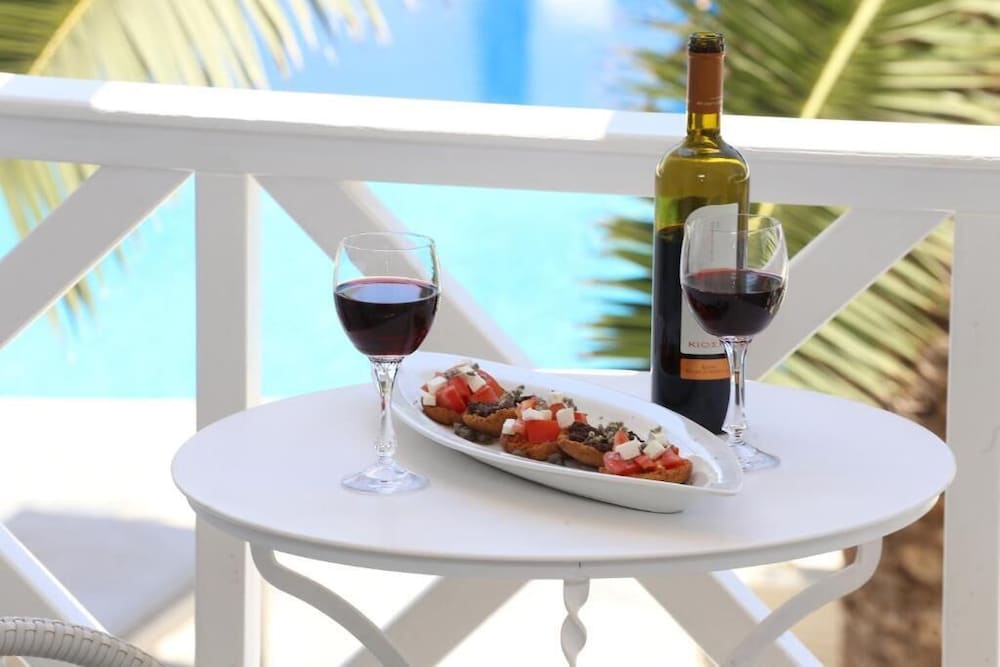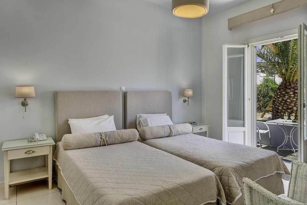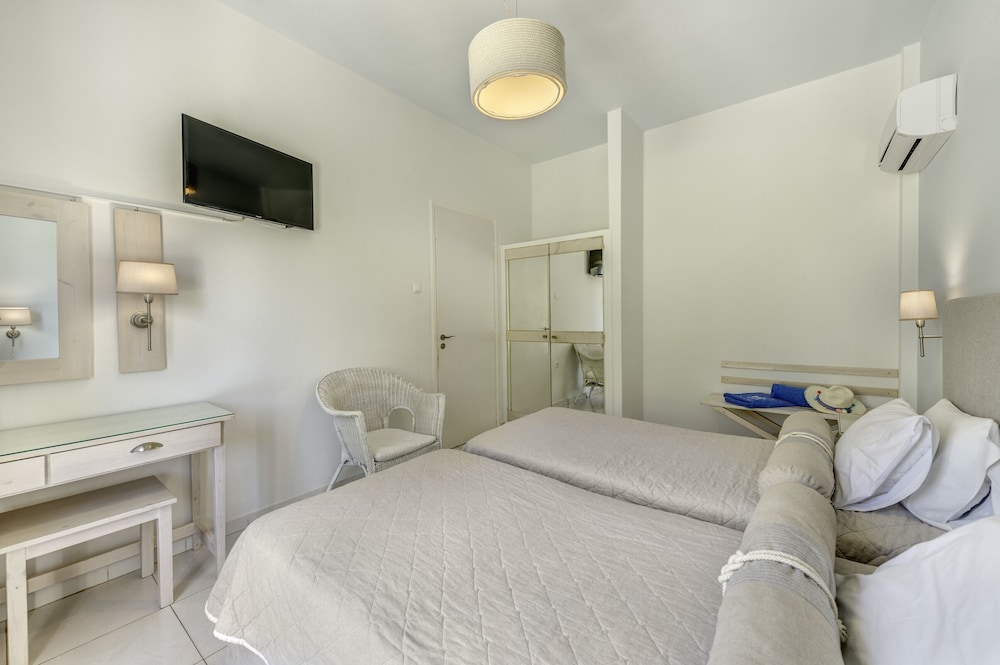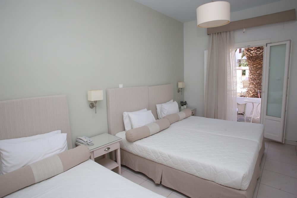 This hotel was excellent in every way. A two minute walk to the beach and the pool was an added bonus. Maria who manages the front desk was extremely helpful and didn’t mind answering our numerous questions. Always friendly and always smiling. The entire staff of this hotel were welcoming and made you feel right at home. The rooms are cleaned every day. And equipped with all the amenities you need. A lovely little balcony to enjoy your morning coffee. Breakfast is included and breakfast buffet was delicious and offered a wide variety. Would highly recommend!