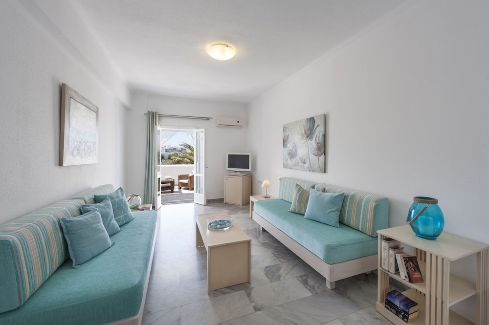 Posizione strategica per visitare le spiagge a sud di Paros protette dal vento, in centro ad Aliki, grazioso paesino di pescatori che si anima la sera offrendo un'ottima cucina a base di pesce fresco nei numerosi ristoranti del lungomare. Comodo anche per raggiungere l'imbarco per Antiparos. Ha una bella e ampia piscina e una discreta colazione a buffet la mattina. Meglio prenotare le camere superior rispetto alle standard, ma nel complesso le camere con terrazzino hanno una bella vista sui tramonti di Paros.