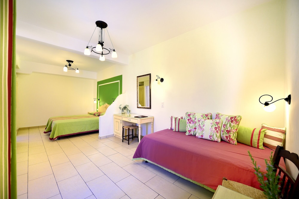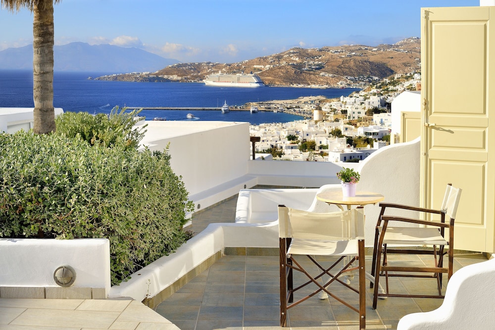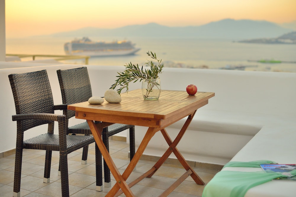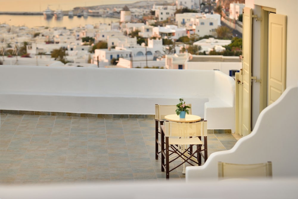 We were welcomed and looked after so warmly by all the people running this charming, beautifully decorated hotel. Our spotless room and large balcony were perched on the hill with absolutely THE BEST view of Mykonos harbour and the old town. A quiet little sanctuary, it was just a five minute walk down the hill to dozens of excellent restuarants and shops. Hotel breakfasts were delicious. All types of tastes are catered for, but the freshly baked orange cake, Greek phyllo spinach & feta pies, olives and fresh cheeses were our favourites, not to mention the lovely ladies that prepared them!