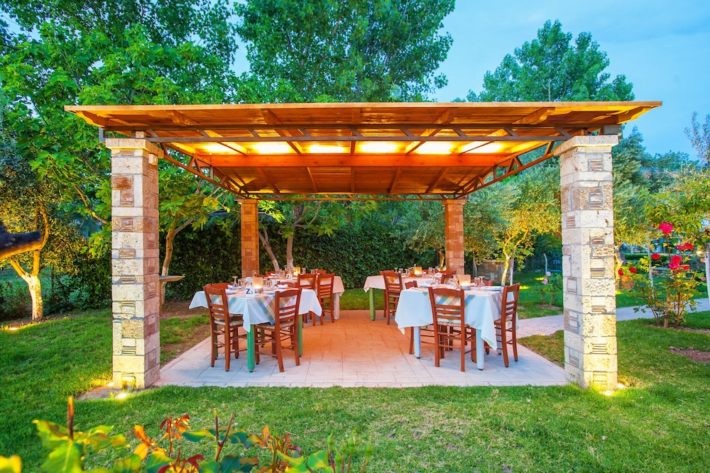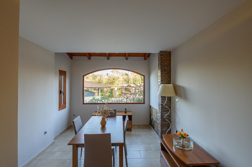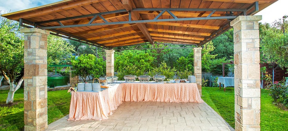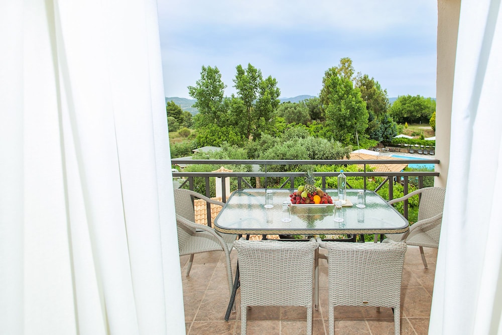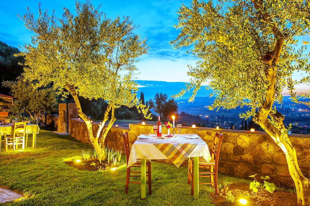 Living the dream! Dinners under olive trees with complimentary lighting, delicious cuisine and service excellence. The property is lush with fruit & nut trees, flowers, and herbs which they boast about using the freshest ingredients often from their local farm and onsite. The pool was fabulous and the chairs comfortable. Breakfast was by far the best we’ve encountered and for those that enjoy ac on a blistering hot day in Ancient Olympia, these units kept the room refreshing and cold! Would go back, highly recommend.