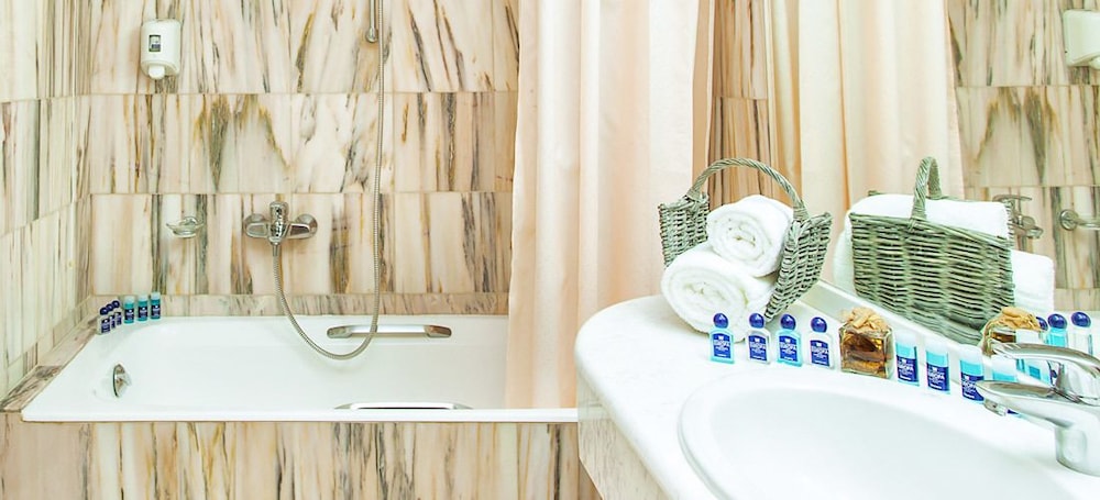 Not until I prepared my review of this hotel did I learn that amenities far exceeded what I expected. Two tour buses loaded to the gills with a combined approximate 100 guests arrived at the same time. How registration cared for so many, in addition to non-group members, is beyond me. Our group arrived late on the warmest November afternoon in Greece's history for a one-night stay. I arrived in the basic, uninspired tourist room, checked out the small balcony overlooking a parking lot and other balconies in major need of an upgrade, and turned on the a/c system. Warm air came out, so I washed a few garments in the sink and hung them in front of the vent, which billowed heat, although the temp was set at 70ºF and "cool" setting. I went to registration and was told I didn’t know how to adjust the a/c system. Duh! I live in Florida. Operating any a/c system is taught prenatal! A clerk went with me to the room, saw that I had it set on Cool and at 70ºF, but heat still saturated the room. I travel with a battery-operated digital thermometer. The temperature in the room was 82ºF. The clerk said that the guests wanted heat. Not this guest! When scores of complaints to registration AND our tour-guide, the clerk came back and said the system was centrally controlled and that heat had been turned on in the morning and not reset for a/c in the afternoon. Guess his opinion of stupid tourists not knowing about a/c changed. He sent a bucket of ice and two bottles of cold water, which I refused. Adamantly and vocally.