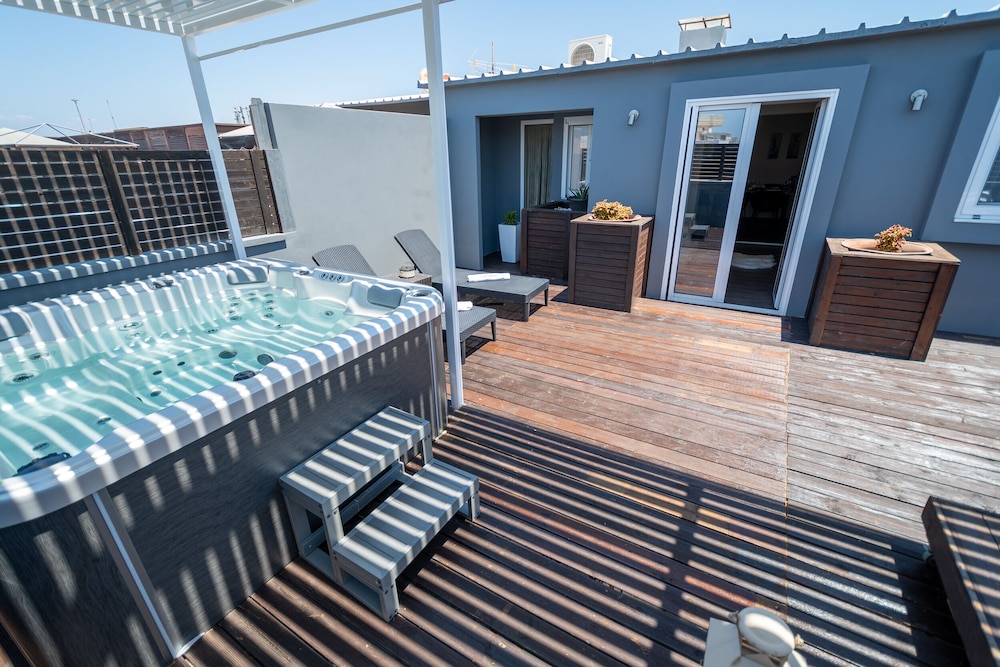 Indulge in rooftop private spa tubs, premium bedding, and complimentary buffet breakfast. Enjoy concierge services, room service, and a bar/lounge for a relaxing stay.